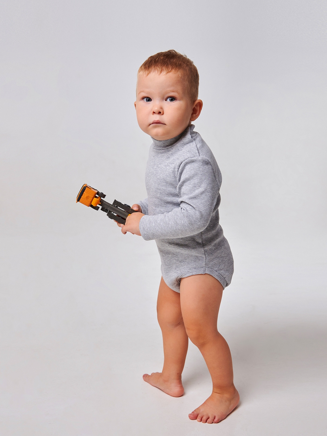 Этот боди-гольф - идеальное решение для маленьких модников, которые хотят выглядеть стильно и ощущать комфорт в любое время года. Пошитый из высококачественного полотна кашкорс с начесом, он обеспечивает тепло, мягкость и защиту от холода. Дополнительную защиту добавит воротник, который прилегает к шее, не допуская переохлаждения горла, но при этом не доставляет дискомфорта ребенку. Удобные кнопки на плечике и внизу позволяют легко и быстро переодевать и менять подгузник, облегчая вам заботу о малыше. Благодаря бодику спинка малыша все время в тепле, даже у самых активных деток. Цвет серый меланж прекрасно сочетается с различными нарядами и стилями, позволяя создавать разнообразные образы для вашего малыша. Он идеально подходит для повседневного использования, прогулок или особых случаев.