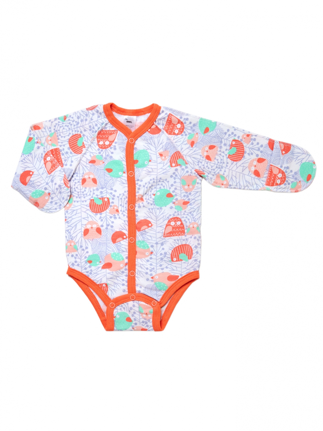 Утепленная боди-распашонка с рисунком волшебных птичек для самых маленьких станет незаменимым подарком, который пригодится каждому родителю! Боди пошит из теплого футера с начесом, что обеспечивает мягкое прикосновение и защиту в холодные осенние дни. Полотно гипоаллергенное, что идеально подходит для самой нежной и чувствительной кожи. Наружные швы и кнопки вдоль всего изделия обеспечивают легкость переодевания и максимальный комфорт для вашей маленькой девочки. Больше не нужно беспокоиться о раздражениях и неудобствах!