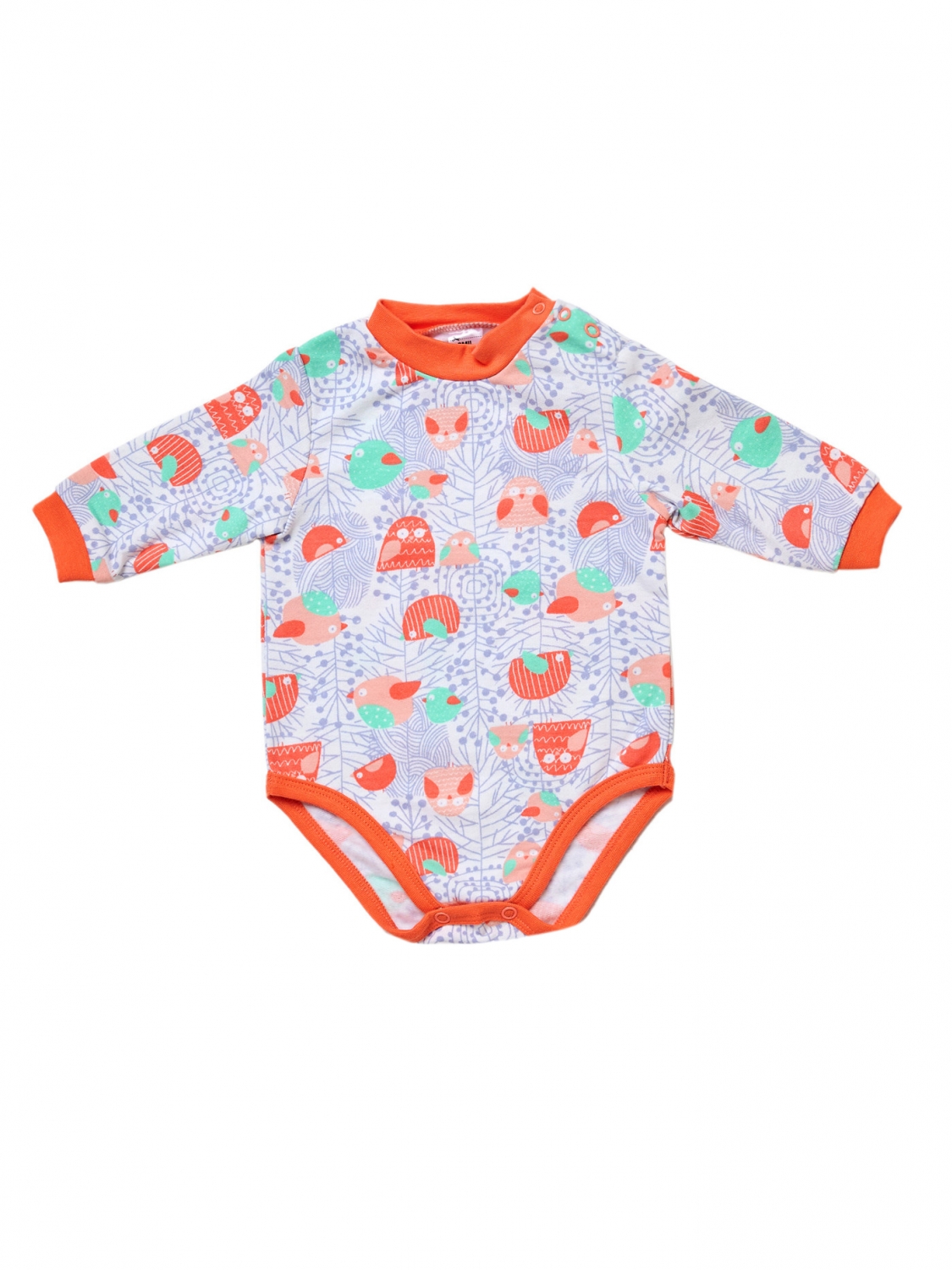 Бодик с длинным рукавом, украшенный забавными птичками на белом фоне. Этот нежный и стильный дизайн привлечет взгляды и подарит чувство легкости и радости. Пошитый из мягкого полотна футер с начесом, бодик обеспечит нежное прикосновение к коже вашей дочки и уютное ощущение комфорта. Удобные кнопочки сверху и внизу облегчат процесс одевания. Бодик - идеальное дополнение к штанишкам из этой коллекции. Такой комплект согреет вашу девочку в прохладные дни и подарит улыбку и хорошее настроение в любую погоду.