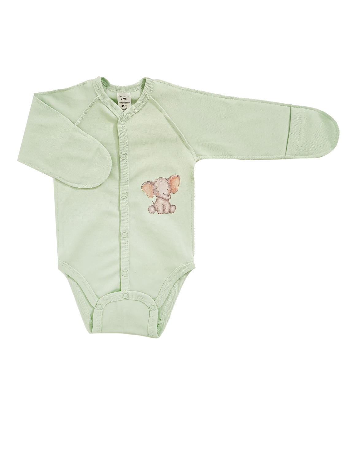 Уютный оливковый боди для вашего малыша с милым слоненком. Мягкий интерлок – идеальное полотно для чувствительной кожи. Закрытые ручки – защита и тепло для нежных ручек малыша. Внешние швы – для дополнительного комфорта, без натираний. Удобные кнопочки для легкого и быстрого переодевания малыша. Прямая печать – яркий и стойкий рисунок, который не теряет вида.