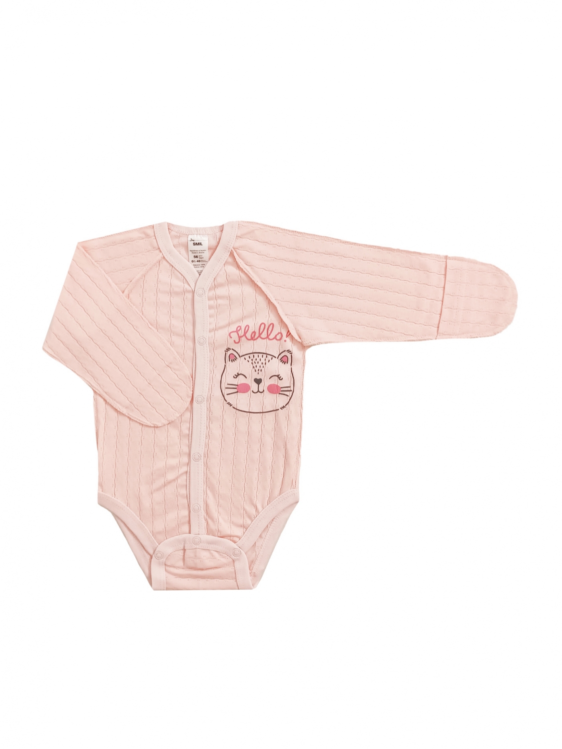 Детская боди-распашонка для девочки | от 56 до 62 | Мягкий и дышащий ажурный кулир высшего качества, 100% хлопок | Идеальна на весну и лето унисекс SMIL 102768 Розовый персик