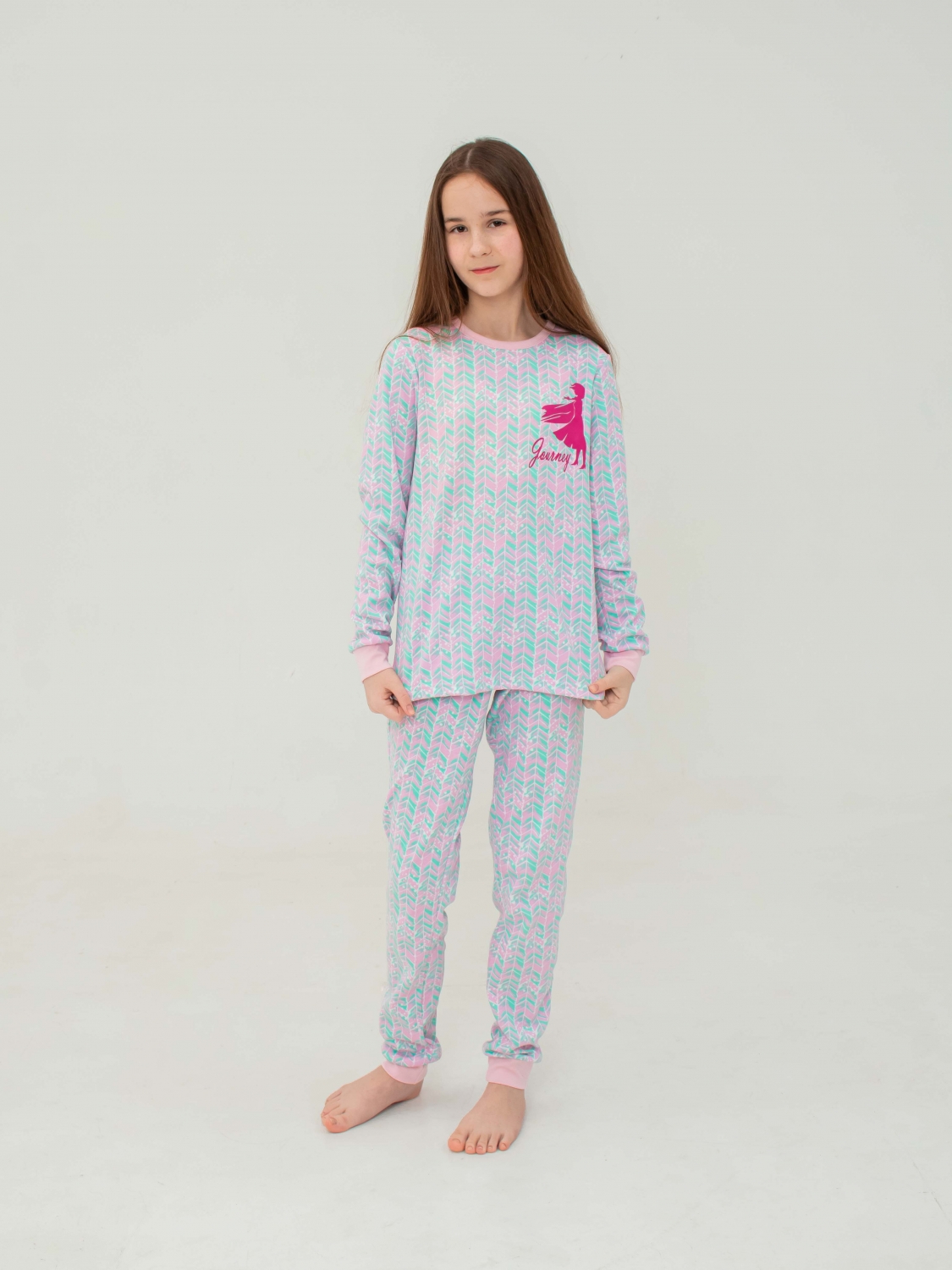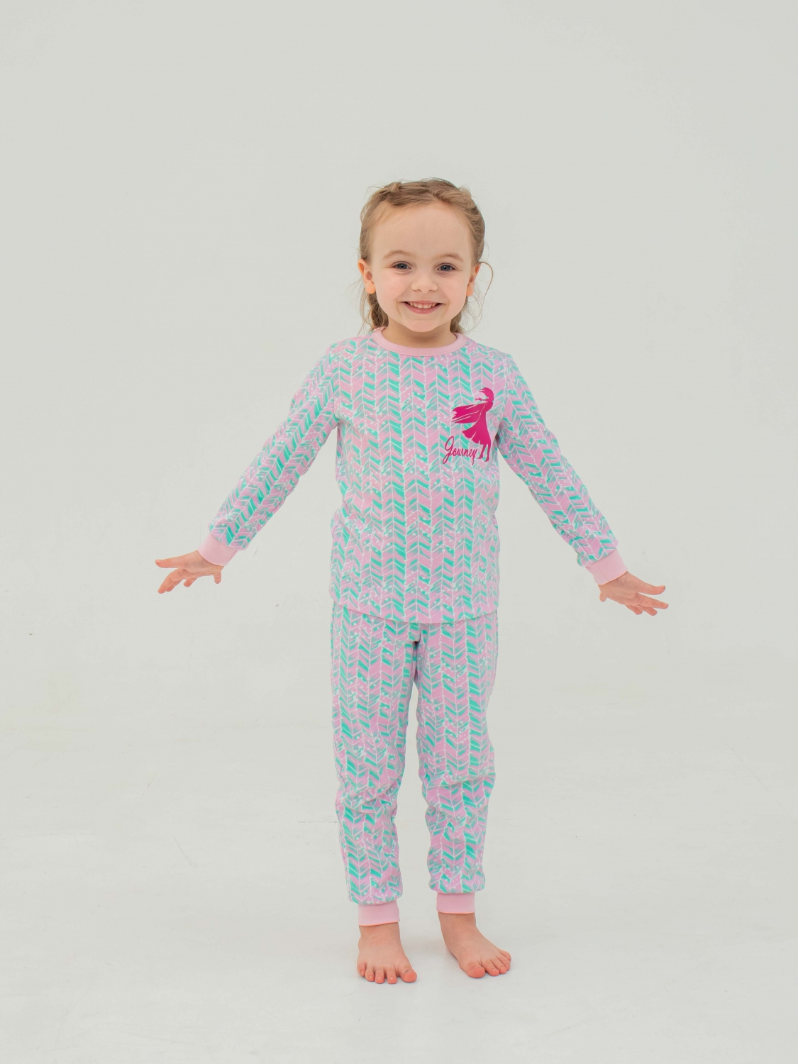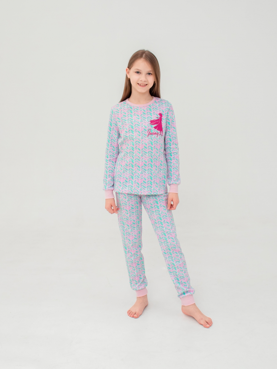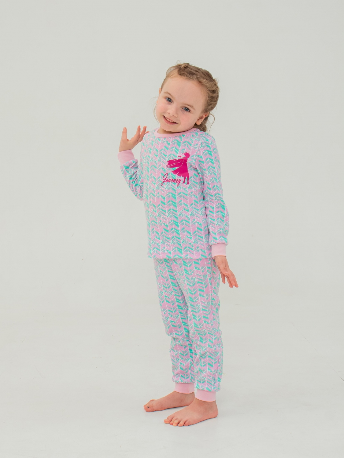 Одевайте вашу малышку в пижаму, которая радует глаз и обладает высоким качеством. Розово-ментоловый рисунок пижамы привлекает внимание своим ярким и стильным дизайном. Пижама украшена красивой и яркой наклейкой, которая привносит дополнительную игривость и красоту в этот дизайн. Важно отметить, что наша наклейка изготовлена из качественного материала, который не трескается и не снимается со временем. Таким образом, ваша малышка будет наслаждаться ярким и стильным видом пижамы долгое время.