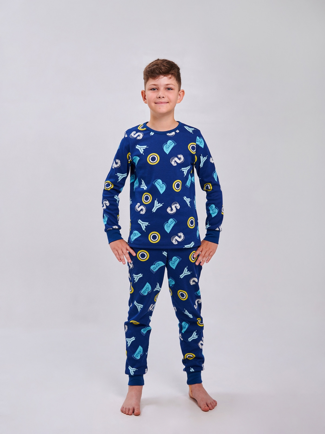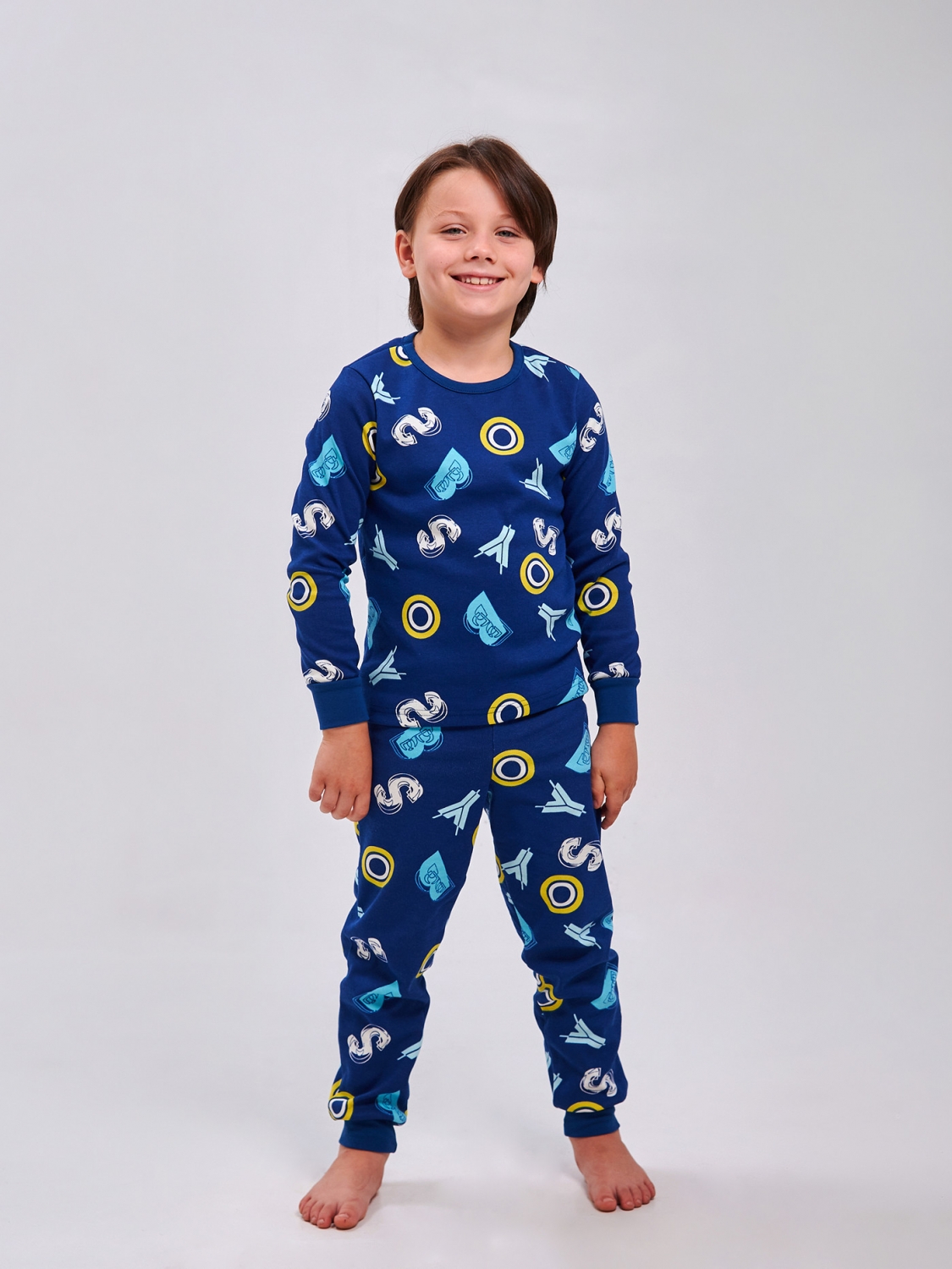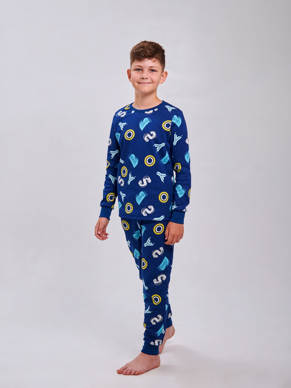Познакомьтесь с новой синей пижамой для мальчиков с оригинальным дизайном! Интересные буквы складываются в яркую надпись "BOYS", создавая стильный и запоминающийся образ. Пошита из мягкого и приятного на ощупь полотна интерлок, эта пижама подарит вашему мальчику комфорт и уют на всю ночь. Пусть каждый сон будет полон радости и приключений!