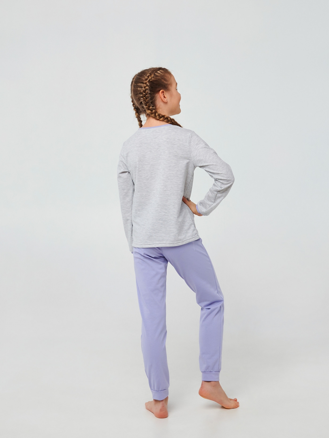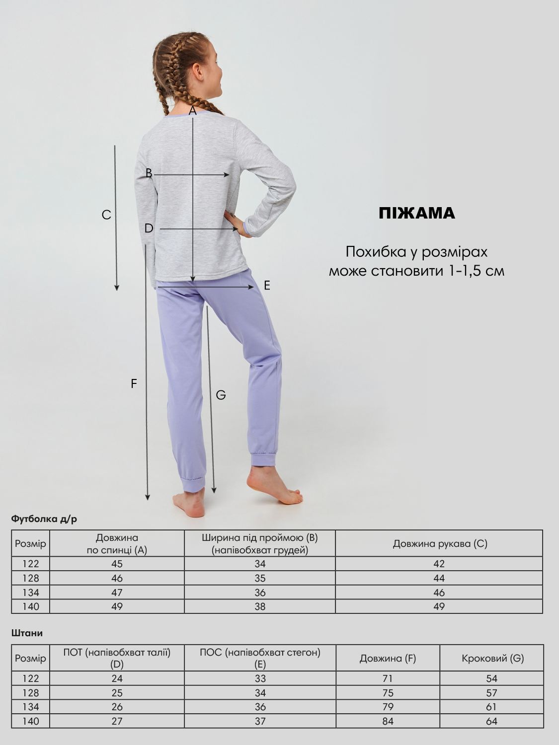 Детская пижама для девочки | от 122 до 170 | Эластичный и дышащий стрейч-кулир высшего качества, 95% хлопок | Идеальна на весну и лето для девочки SMIL 104699 Серый меланж