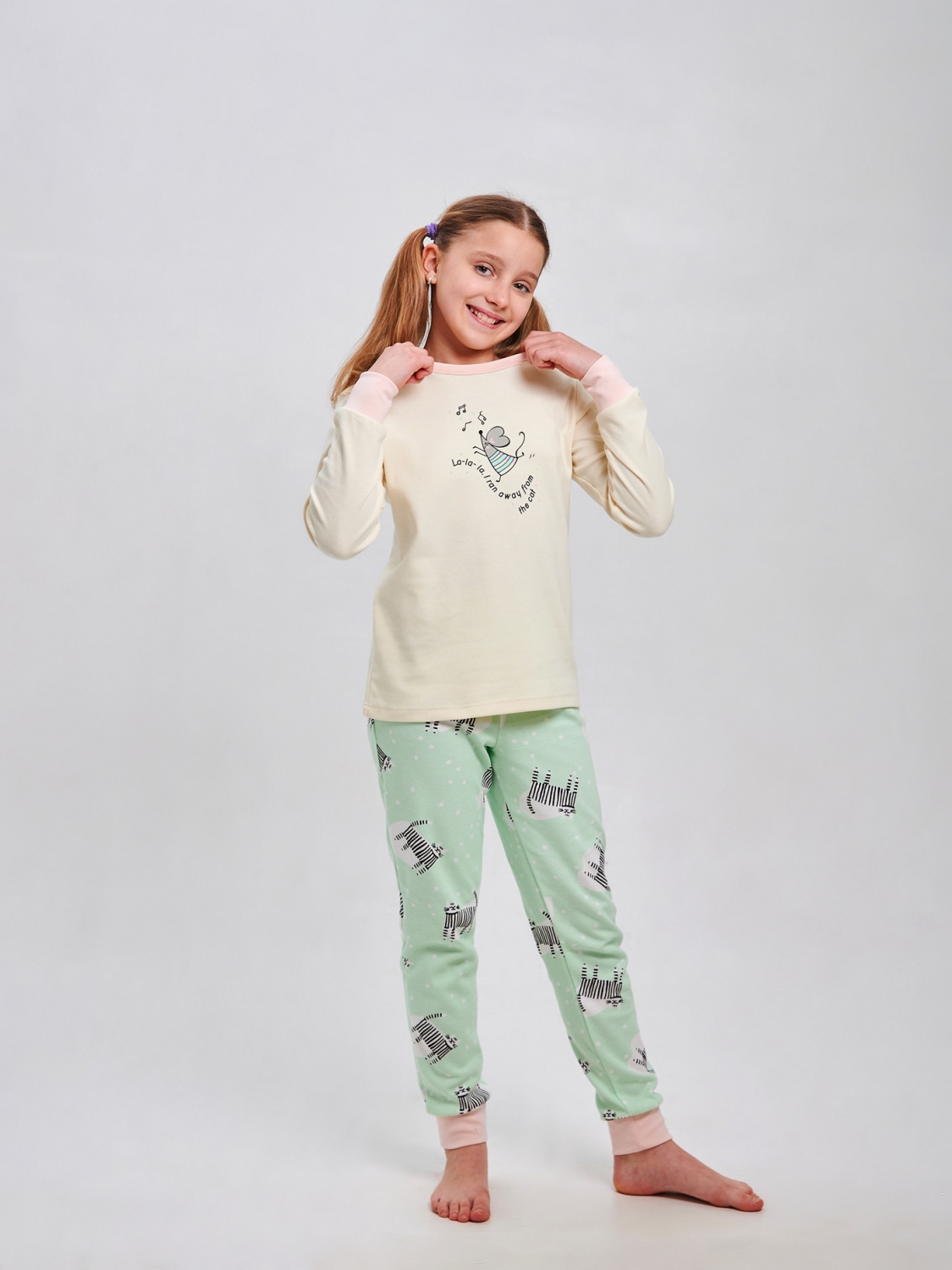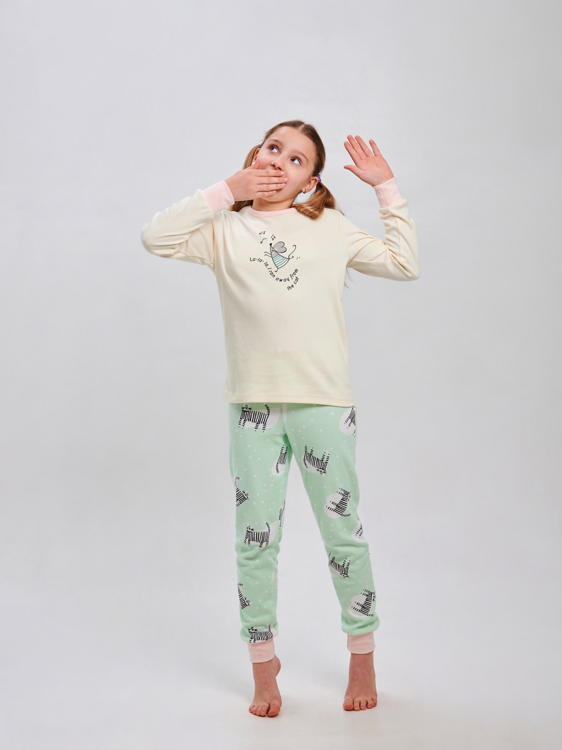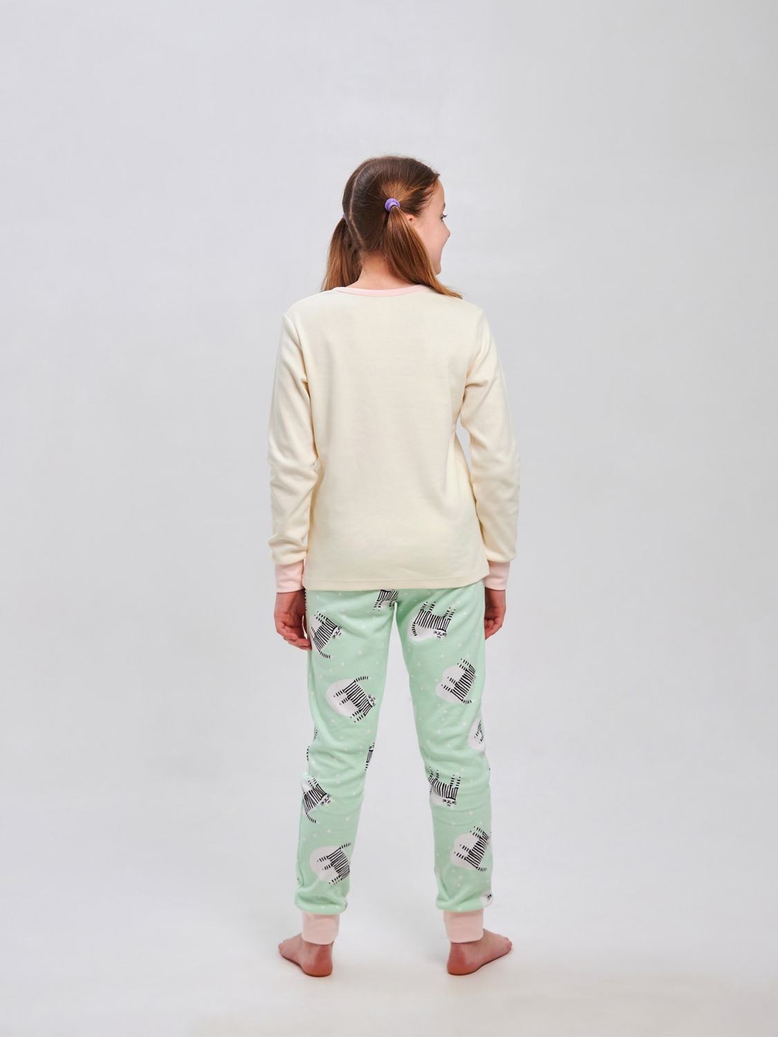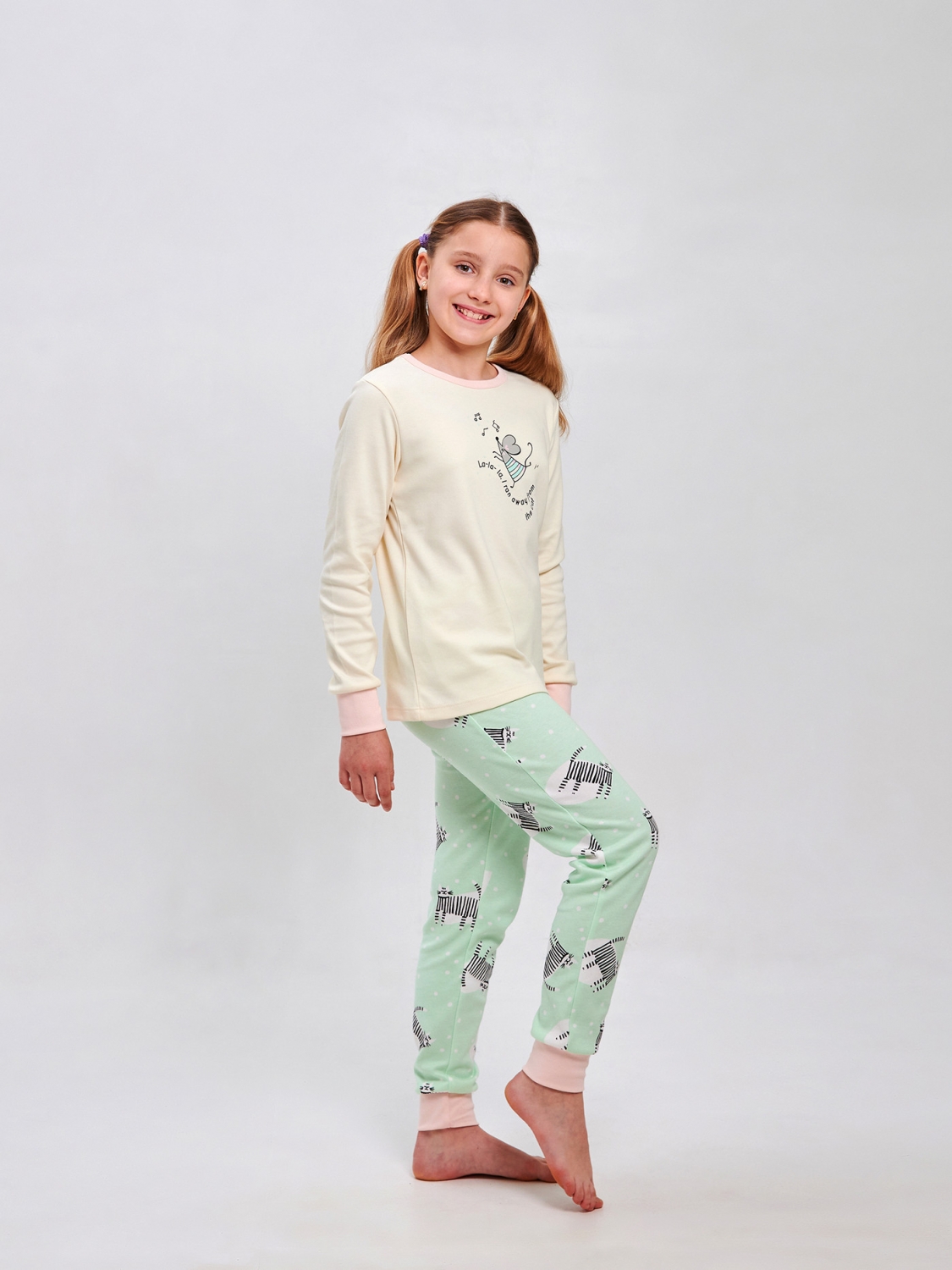 Детская пижама | от 146 до 164 | Эластичный и дышащий интерлок высшего качества, 100% хлопок | Идеально на осень, теплая, приятная на ощупь. для девочки SMIL 104838 Молочный