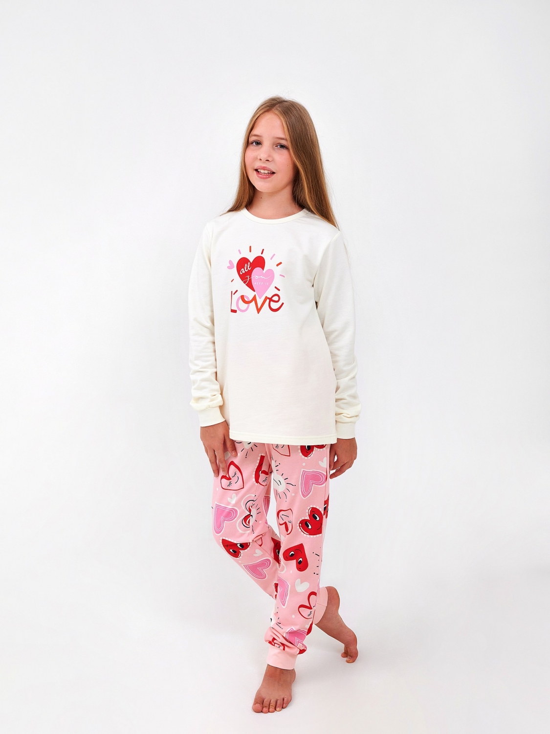 Детская пижама с начесом для девочки Размер: от 158 см до 170 см 100% cotton Premium футер для девочки SMIL 104860-1 Молочный