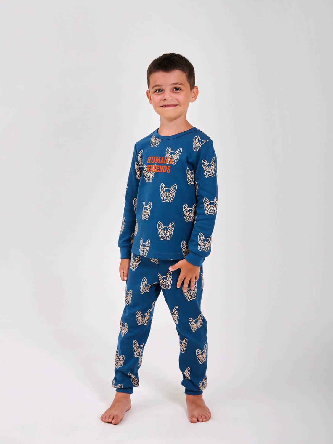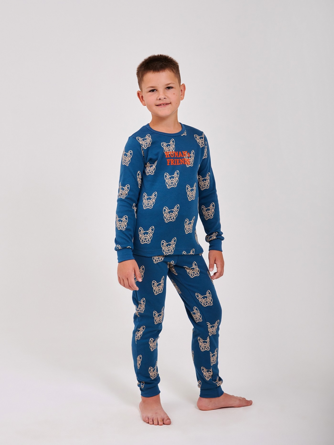 Пижама для мальчика «Human’s Friends» — для сладких снов и радостных утр! Мягкий и дышащий интерлок бережно заботится о коже, а яркий рисунок с забавными мордашками собак делает пижаму любимой у детей. Удобный крой и эластичные манжеты обеспечивают свободу движений во время сна. Комфорт, стиль и позитив — всё в одной пижаме!