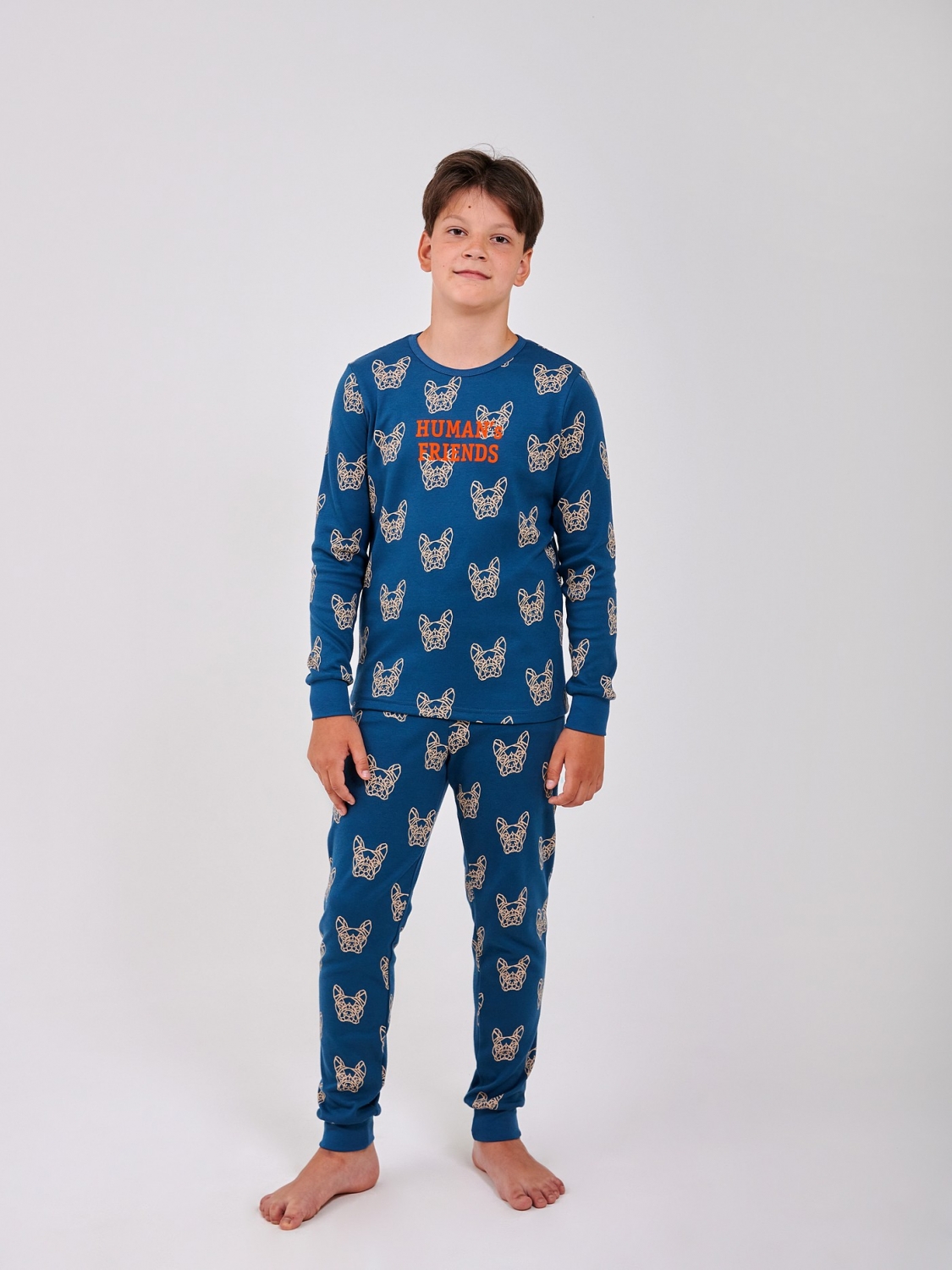 Пижама для мальчика «Human’s Friends» — для сладких снов и радостных утр! Мягкий и дышащий интерлок бережно заботится о коже, а яркий рисунок с забавными мордашками собак делает пижаму любимой у детей. Удобный крой и эластичные манжеты обеспечивают свободу движений во время сна. Комфорт, стиль и позитив — всё в одной пижаме!