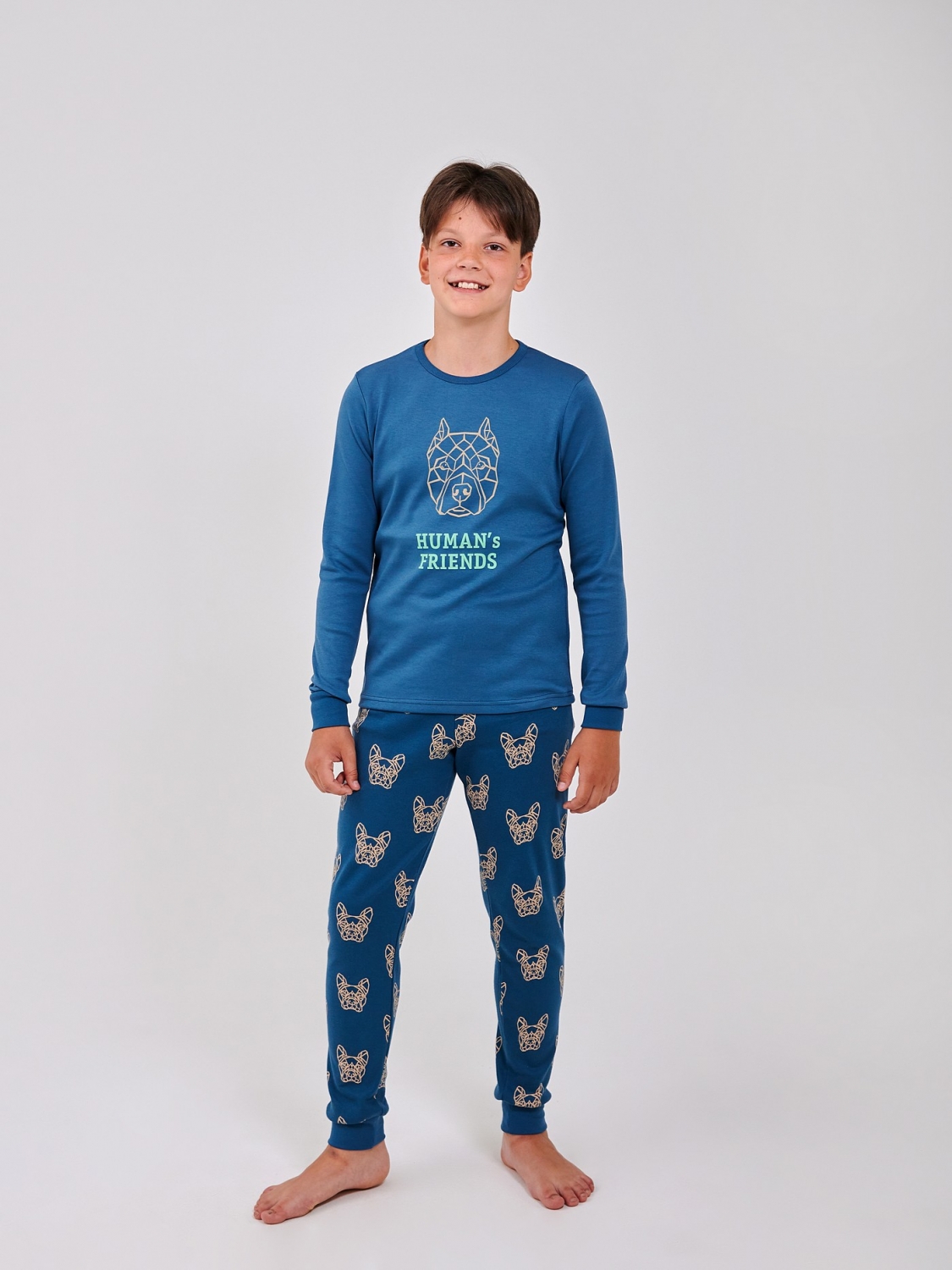 Пижама для мальчика «Human’s Friends» — для сладких снов и радостных утр! Мягкий и дышащий интерлок бережно заботится о коже, а яркий рисунок с забавными мордашками собак делает пижаму любимой у детей. Удобный крой и эластичные манжеты обеспечивают свободу движений во время сна. Комфорт, стиль и позитив — всё в одной пижаме!