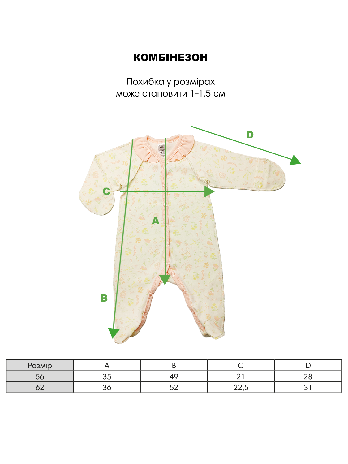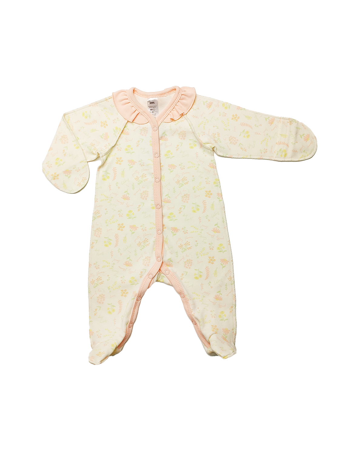 Очарование в каждой детали — комбинезон с рисунком полевых цветов! Создайте весенний облик для вашей девочки с этим уютным и стильным нарядом. Воротник украшен изысканной рюшей, добавляя дополнительный шарм этому комбинезону. Закрытые ручки и ножки обеспечивают защиту от холода. Полотно из 100% хлопка, полностью гипоаллергенное, не раздражает и не причиняет дискомфорта. Удобная застежка.