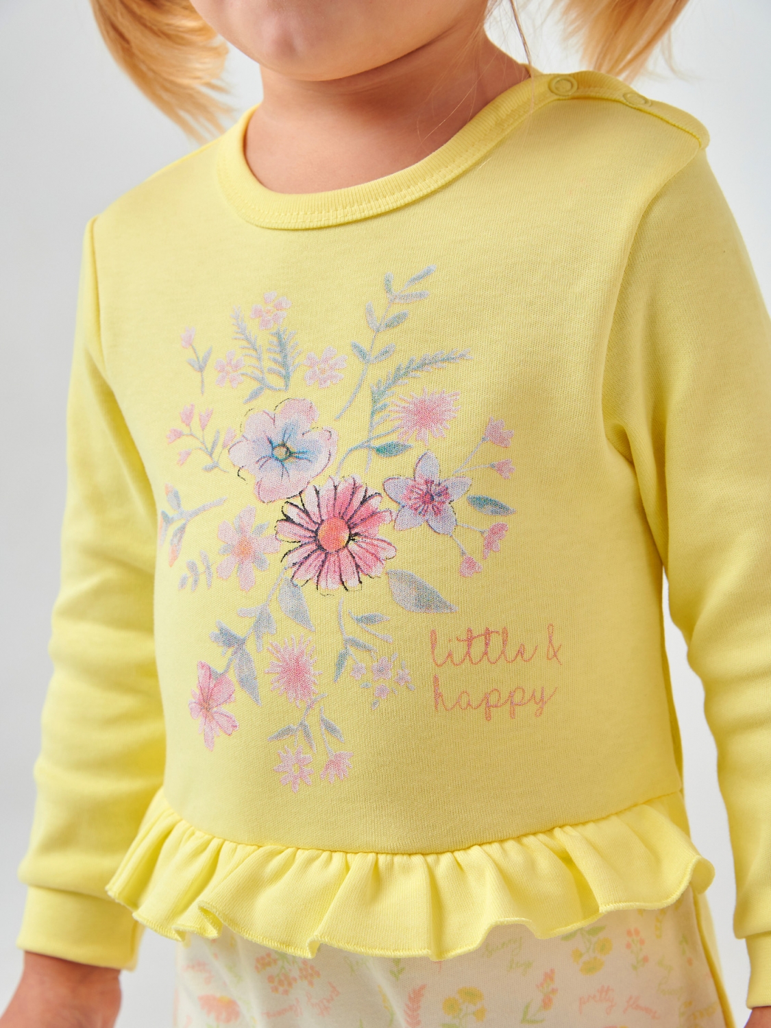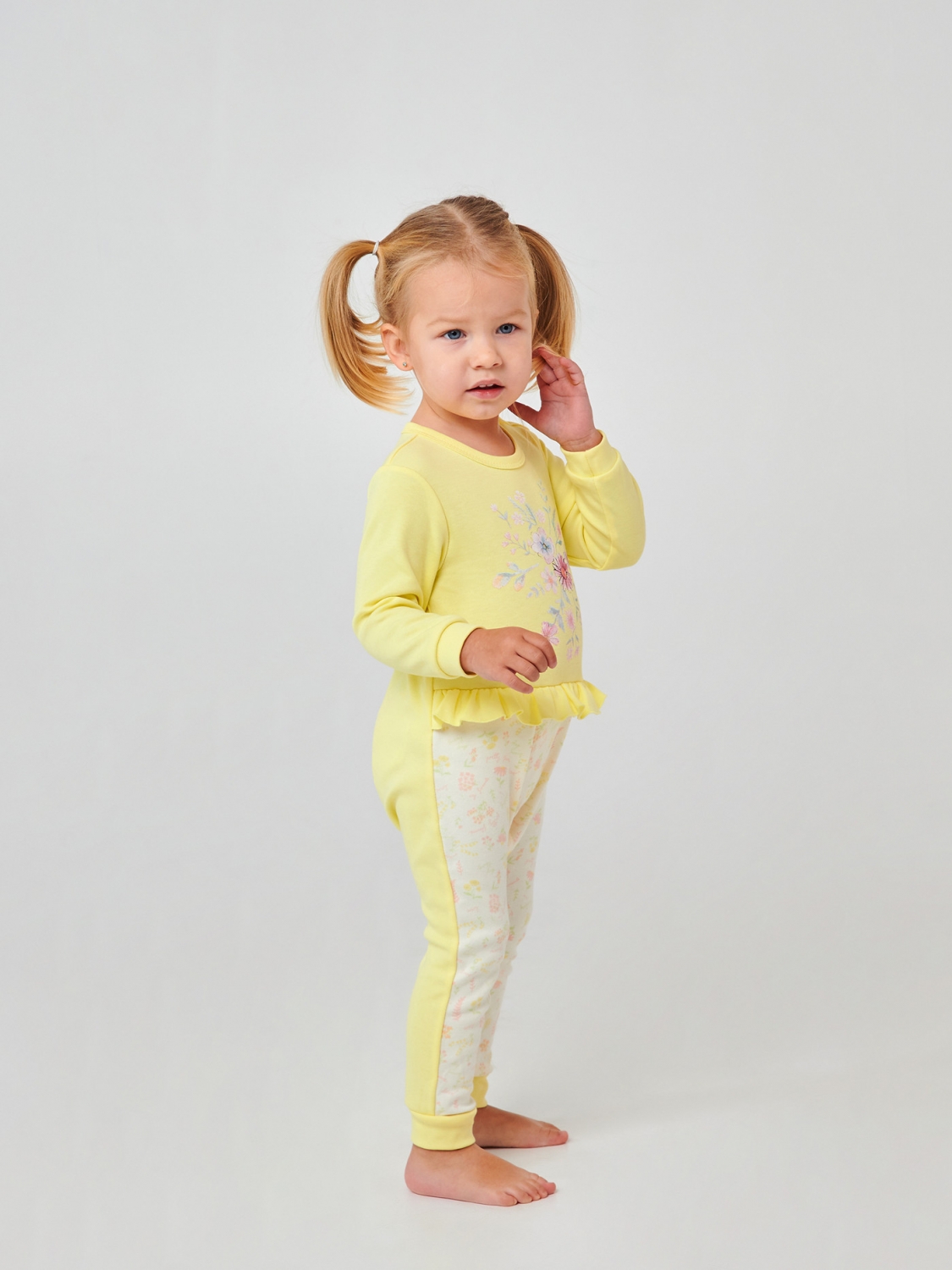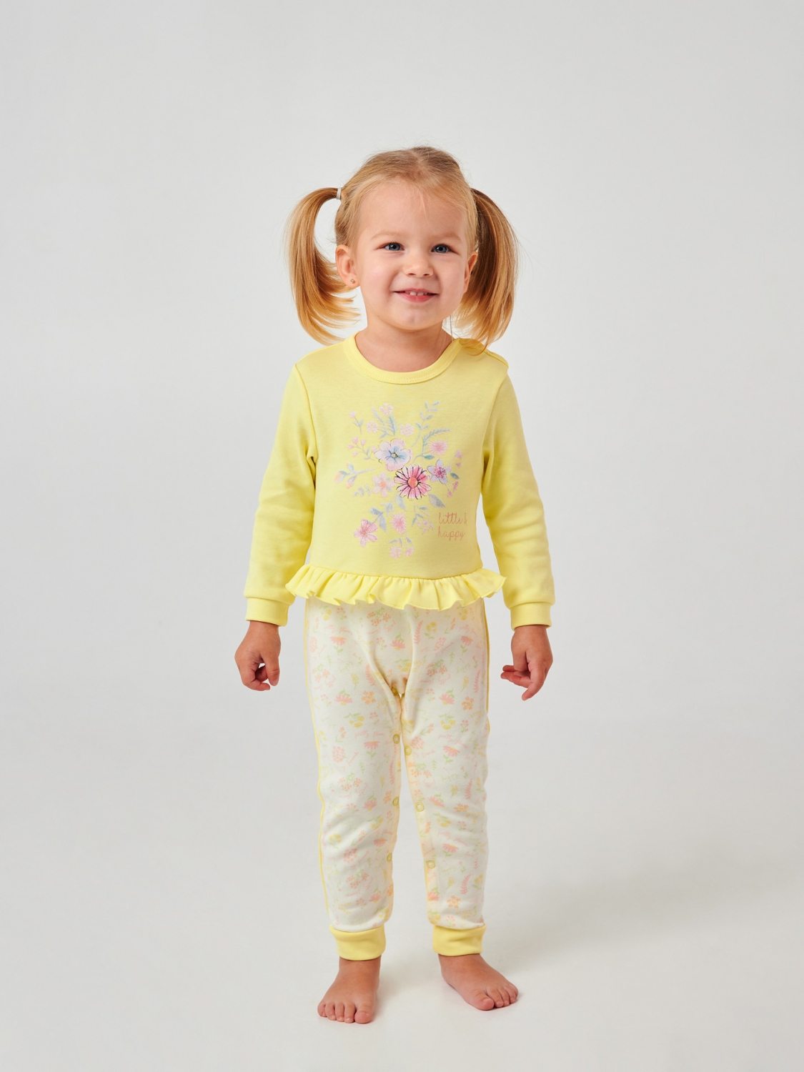 Погрузитесь в весеннюю атмосферу с нашим комбинезоном, сочетающим в себе нежный желтый оттенок и прекрасный рисунок весенних цветов. Прямая печать весенних цветов добавит вашей девочке радости и тепла. Каждый цветок — как лучик солнца, создающий атмосферу весеннего волшебства. Украшенный рюшей перед придает комбинезону нотки нежности и легкости. Манжеты на ручках и ножках обеспечивают удобство и тепло. Мы используем только самые нежные материалы для кожи вашего малыша. Хлопковое полотно интерлок обеспечивает комфорт и позволяет коже дышать.