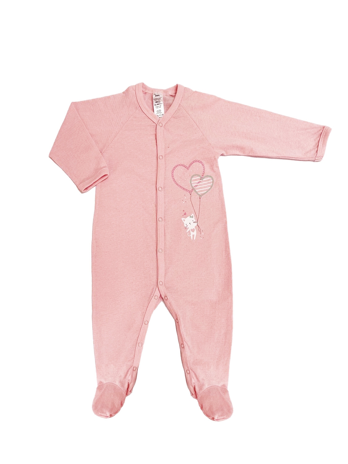 Окутайте вашу малышку лаской и нежностью в нашем милом комбинезоне в цвете розовый персик. Пошитый из мягкого ажурного кулира, наш комбинезон прилегает к телу вашей девочки, обеспечивая непревзойденный комфорт и воздухопроницаемость. Удобные кнопки и закрытые ножки делают его надежным и практичным выбором на каждый день. Прямая печать котика с сердечками добавляет в этот комбинезон нежности и игривости.