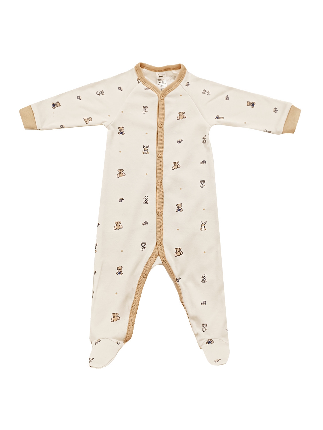 Белый комбинезон с очаровательным принтом милых зверята, которые украсят образ малыша. Мягкий интерлок – дышащее и приятное к телу полотно. Закрытые ножки обеспечат тепло и защиту для маленьких ножек. Удобные кнопки для быстрого переодевания.