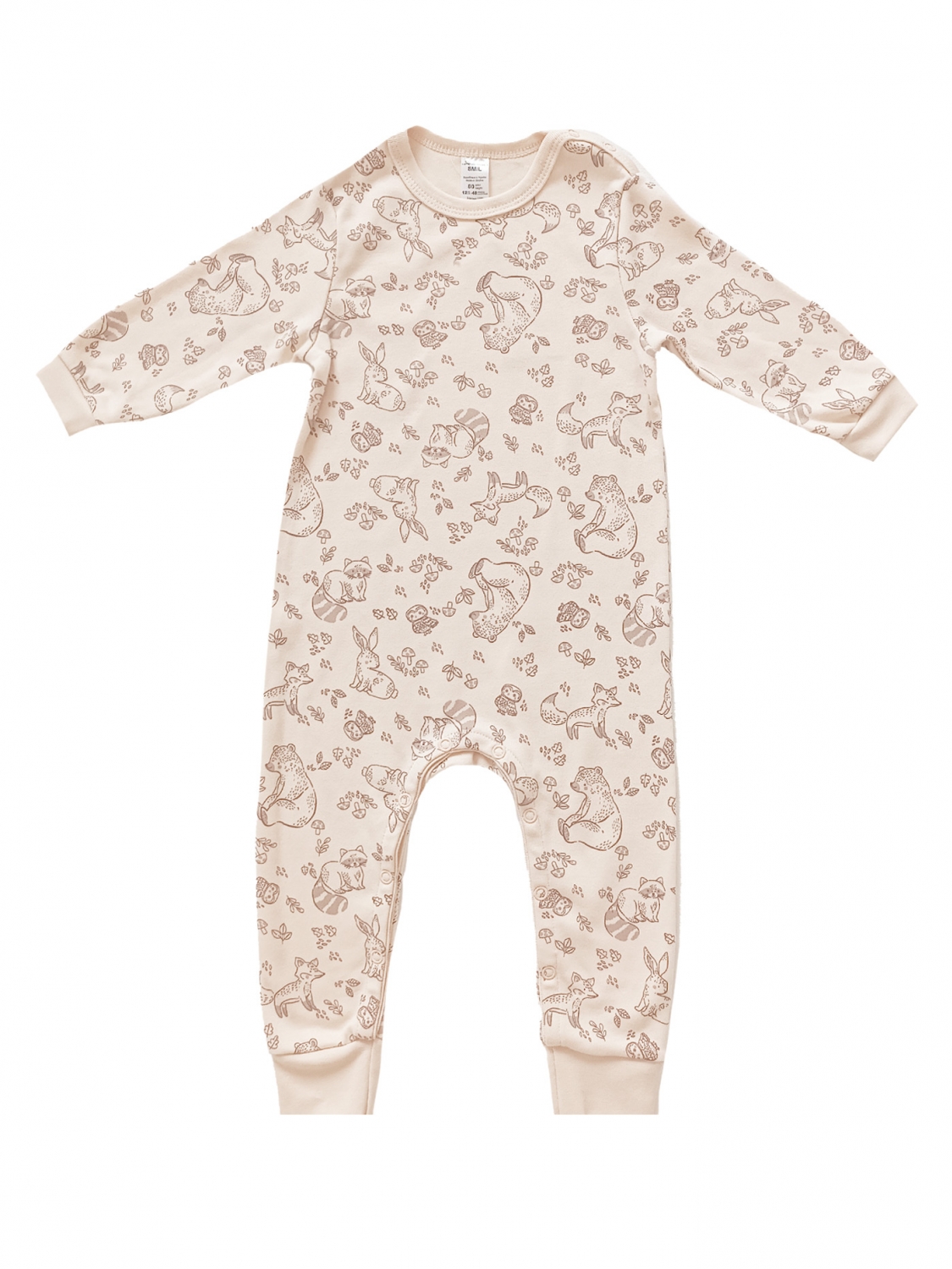 Комбинезон для малышей с лесными зверятами — уют в каждой детали! Нежный комбинезон из мягкого интерлока с очаровательным рисунком лесных зверей. Эластичные манжеты, удобные кнопки и свободный крой обеспечивают комфорт малышу, а натуральная ткань дарит коже заботу и тепло. Для самых милых моментов с первых дней жизни.