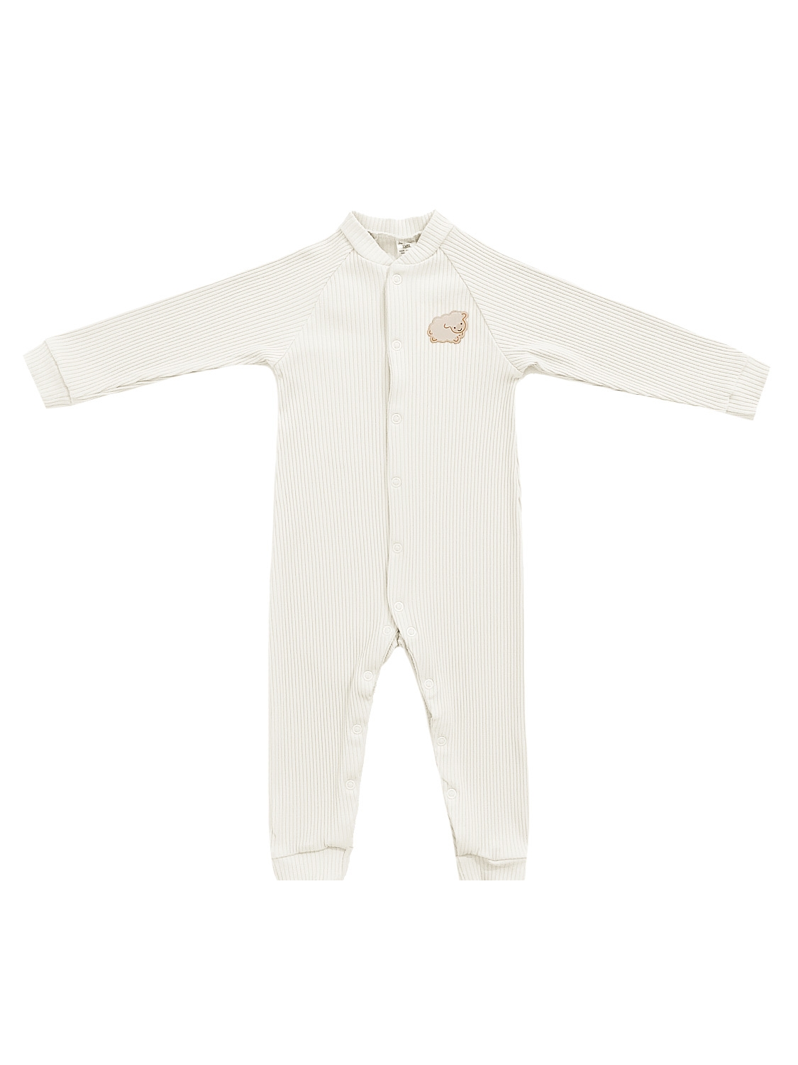 Пошитый из нежного рубчика, этот комбинезон обеспечит комфорт и свободу движений. Милая адгезивная нашивка добавляет очарования, а кнопочки вдоль всего изделия делают переодевание лёгким и удобным. Идеальный выбор для сна, игр и прогулок!