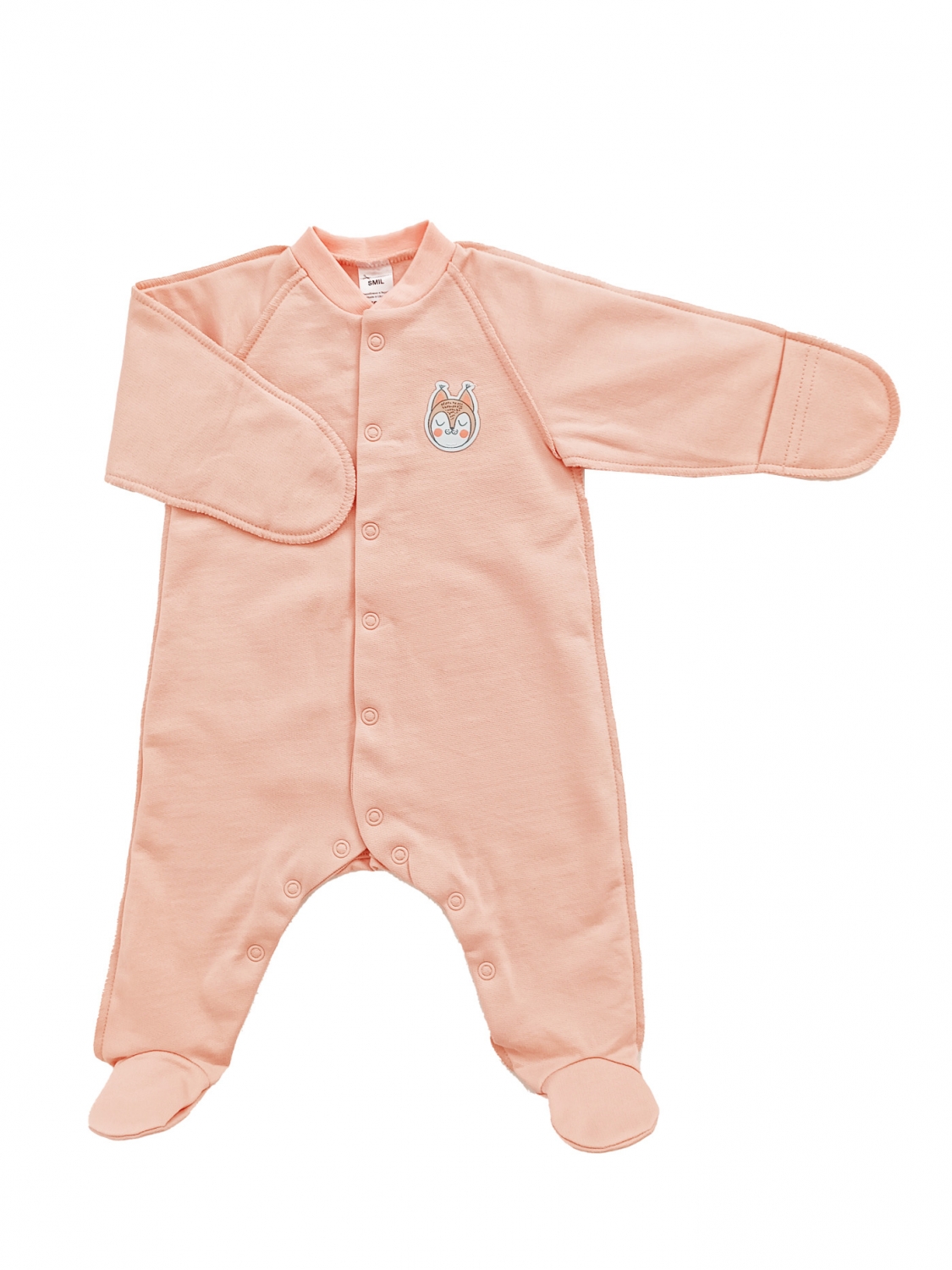 Нежный и уютный комбинезон для малышей из полотна футер с начесом. Наружные швы, чтобы ничего не раздражало чувствительную кожу. Закрытые ручки обеспечивают дополнительное тепло и защиту. Удобные кнопки помогают легко переодевать ребёнка. Дополняет изделие милая адгезивная нашивка, создающая стильный акцент.