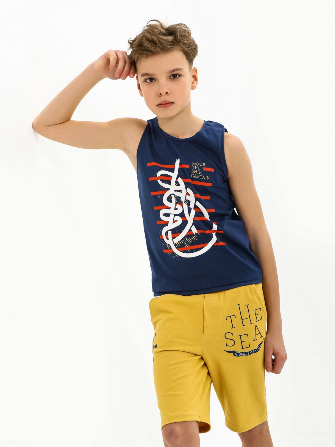 Майка классического кроя для мальчиков возрастом от 2 до 6 лет. Переднюю часть изделия украшает печатный принт, который придает ему оригинальность. Модель сшита из 100% хлопка, поэтому идеально подходит для лета