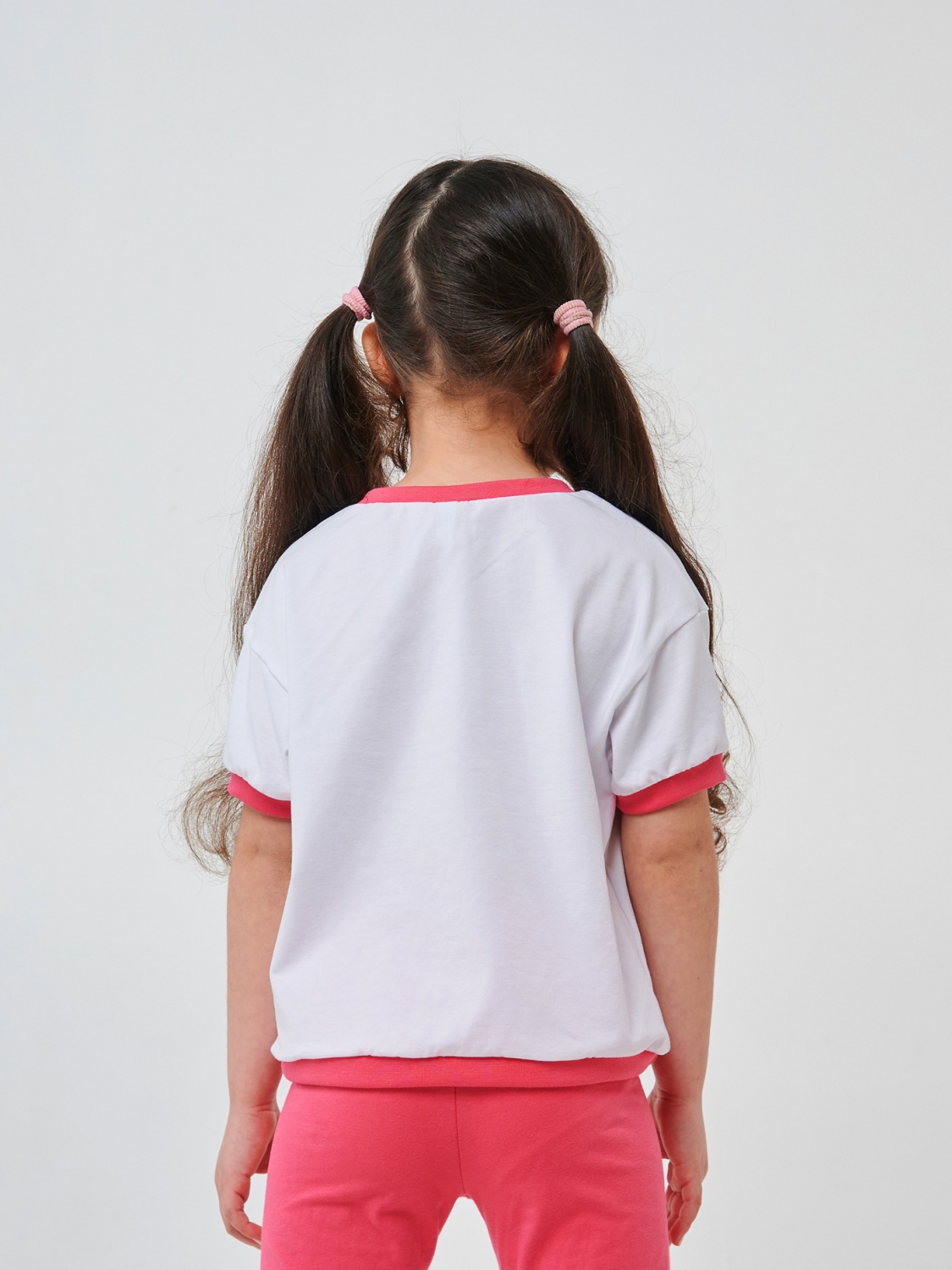 Нарядная белая футболка на манжетах с веселым принтом котика с цветами. Тонкая и легкая. Укороченная модель футболки подойдет к шортам, юбкам и лосинам. Отличный вариант одежды для праздника, выхода в город либо прогулке по парку.