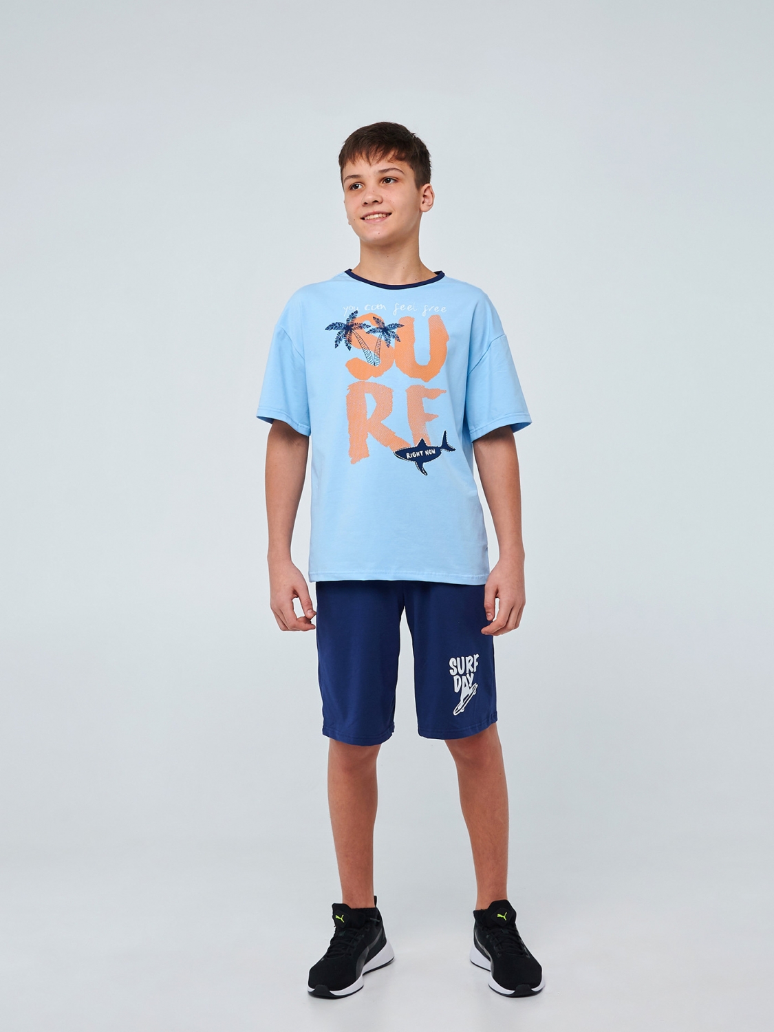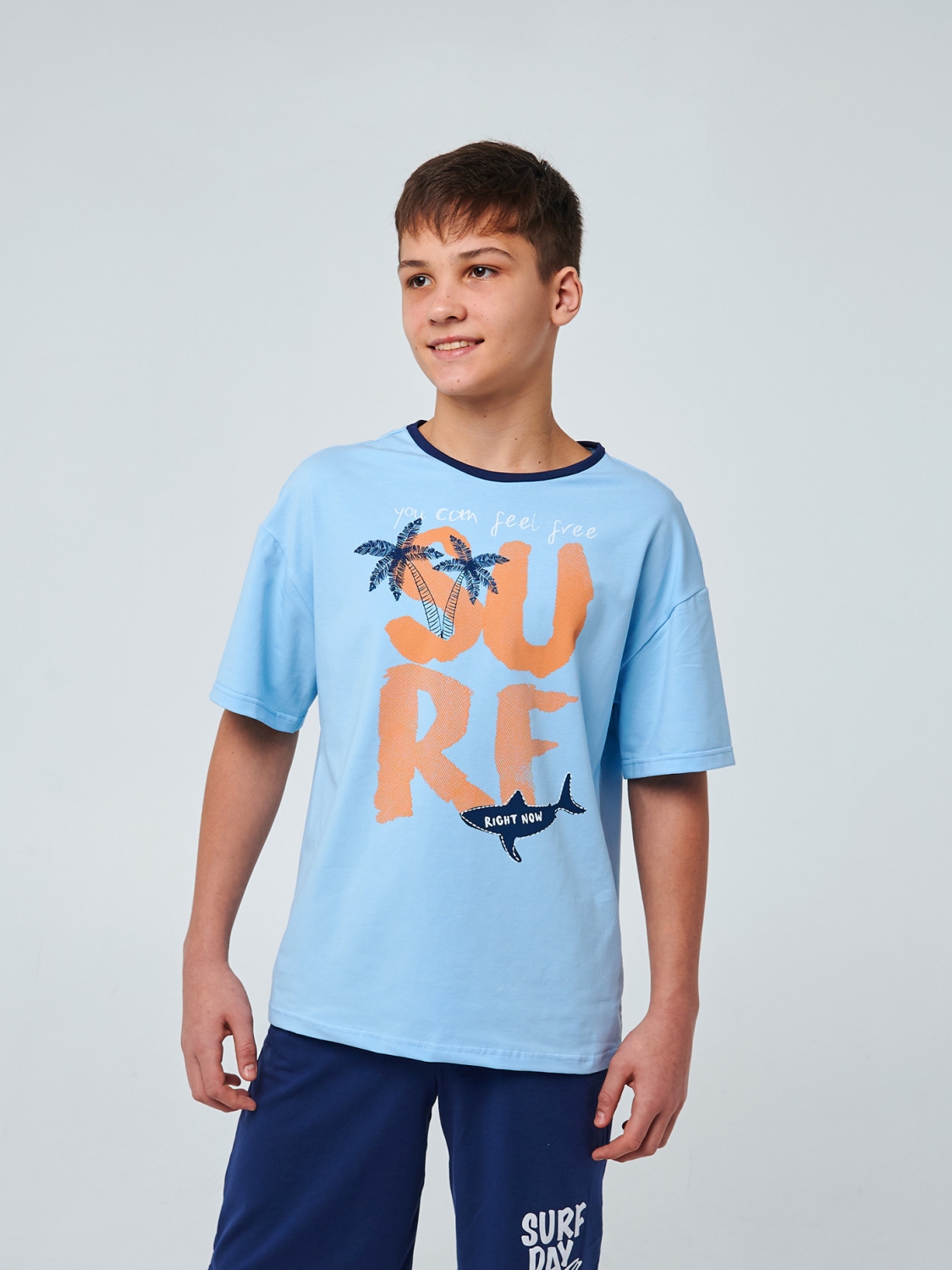 Детская футболка | 146, 152, 158, 164, 170 | Стрейч-кулир высшего качества | 95% хлопок | Лето | Комфортно и стильно для мальчика SMIL 110755 Голубой