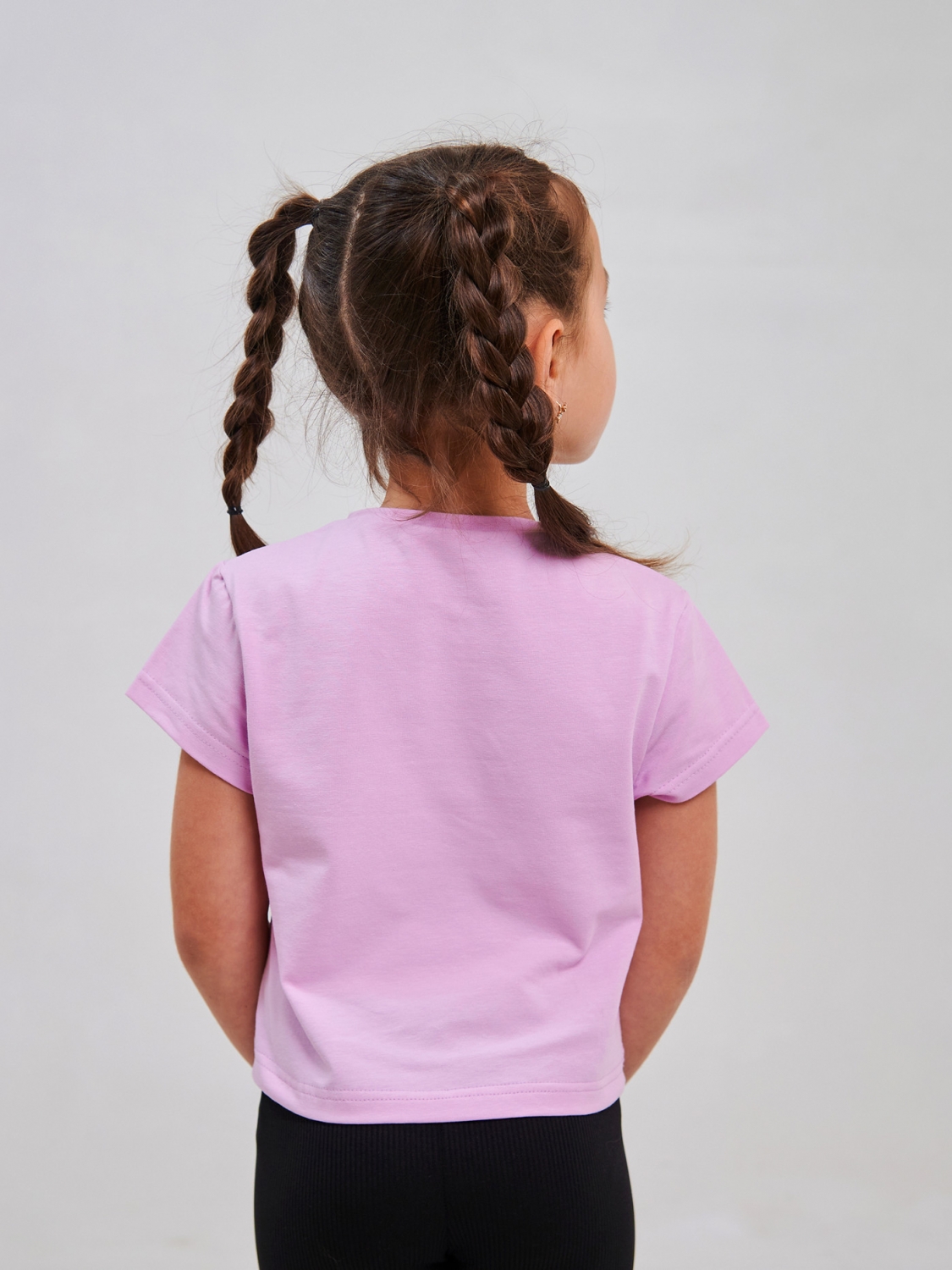 Стильная и современная футболка создана для того, чтобы ваша девочка чувствовала себя комфортно и стильно в теплые летние дни. Пошитая из мягкого и эластичного стрейчевого кулира, она обеспечивает свободу движения и комфорт даже в самые жаркие дни. Легкое и дышащее полотно позволяет коже дышать, создавая ощущение свежести и комфорта в течение всего дня.