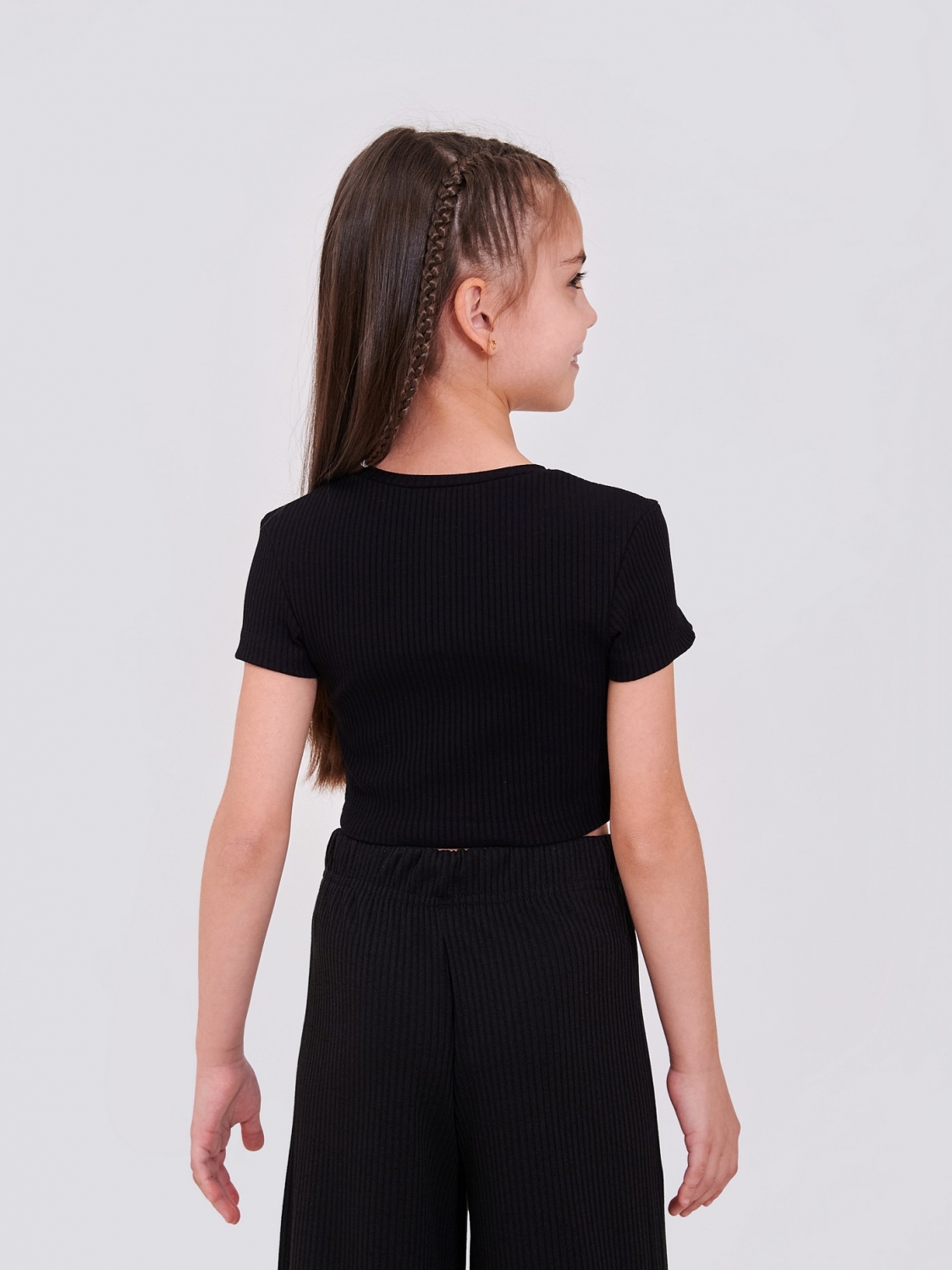 Детский топ для девочки | Размер: от 122 до 164 см | 95% cotton | Эластичный Рубчик для девочки SMIL 110795 Черный