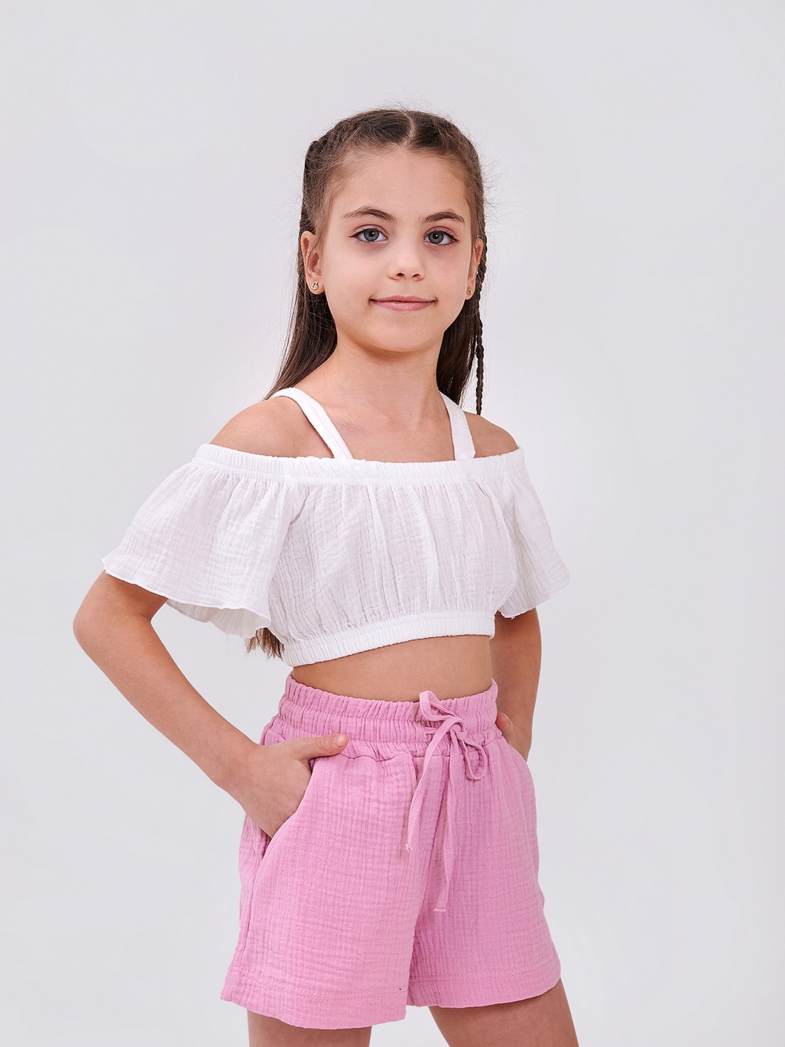 Летний топ на лямках с изящными рукавами из муслина — воплощение лёгкости и романтики.Муслин — мягкий, дышащий, идеально подходит для жаркой погоды. Лекгие рукава создают сказочный объём и добавляют образу воздушности и утончённости. Молочный оттенок — универсальный и нежный, легко сочетается с любыми низами.