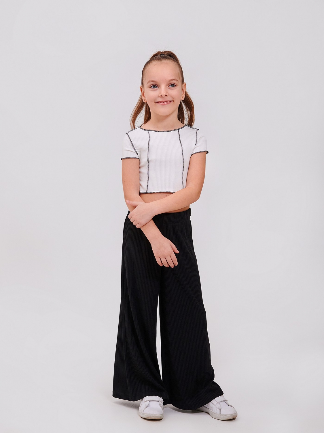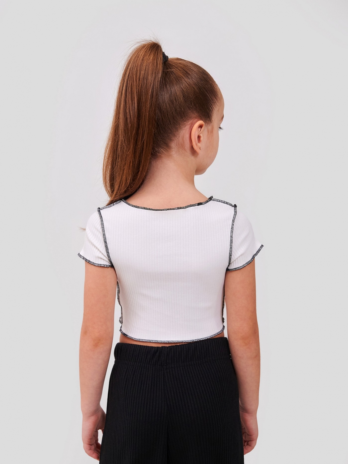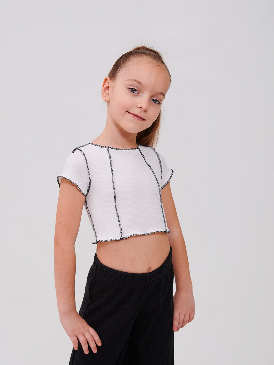 Детский топ для девочки | Размер: от 122 до 140 см | 95% cotton | Эластичный Рубчик для девочки SMIL 110834 Молочный