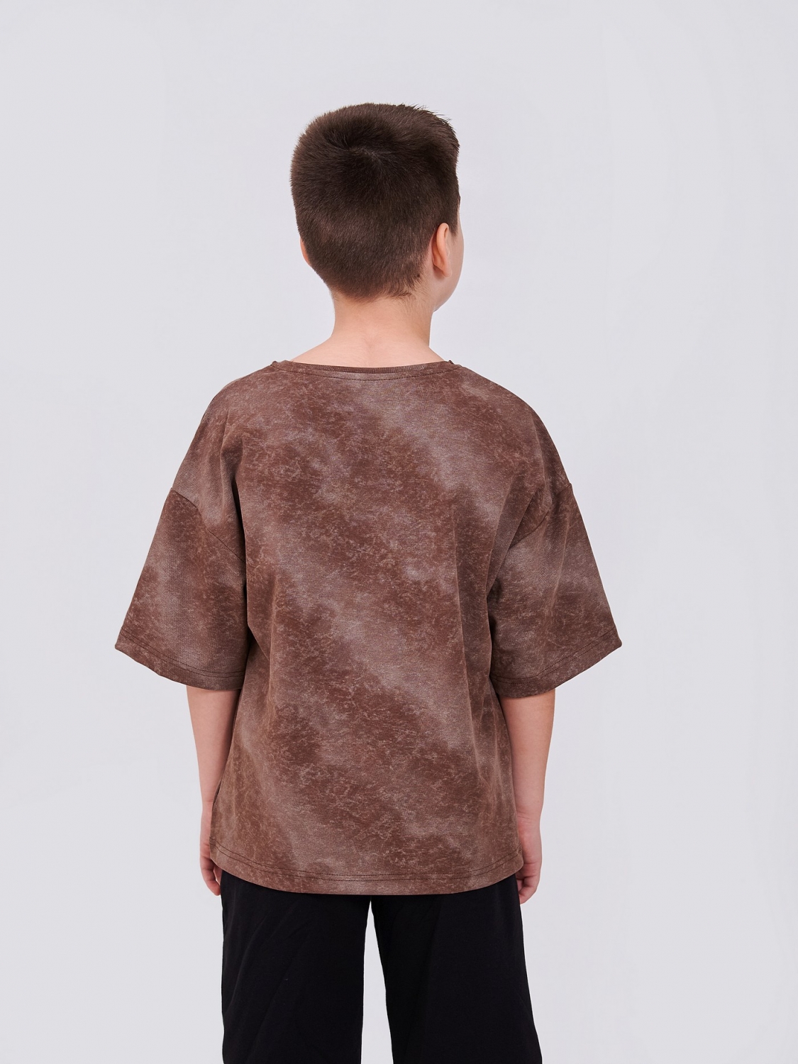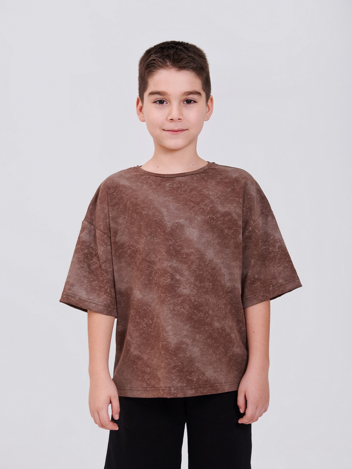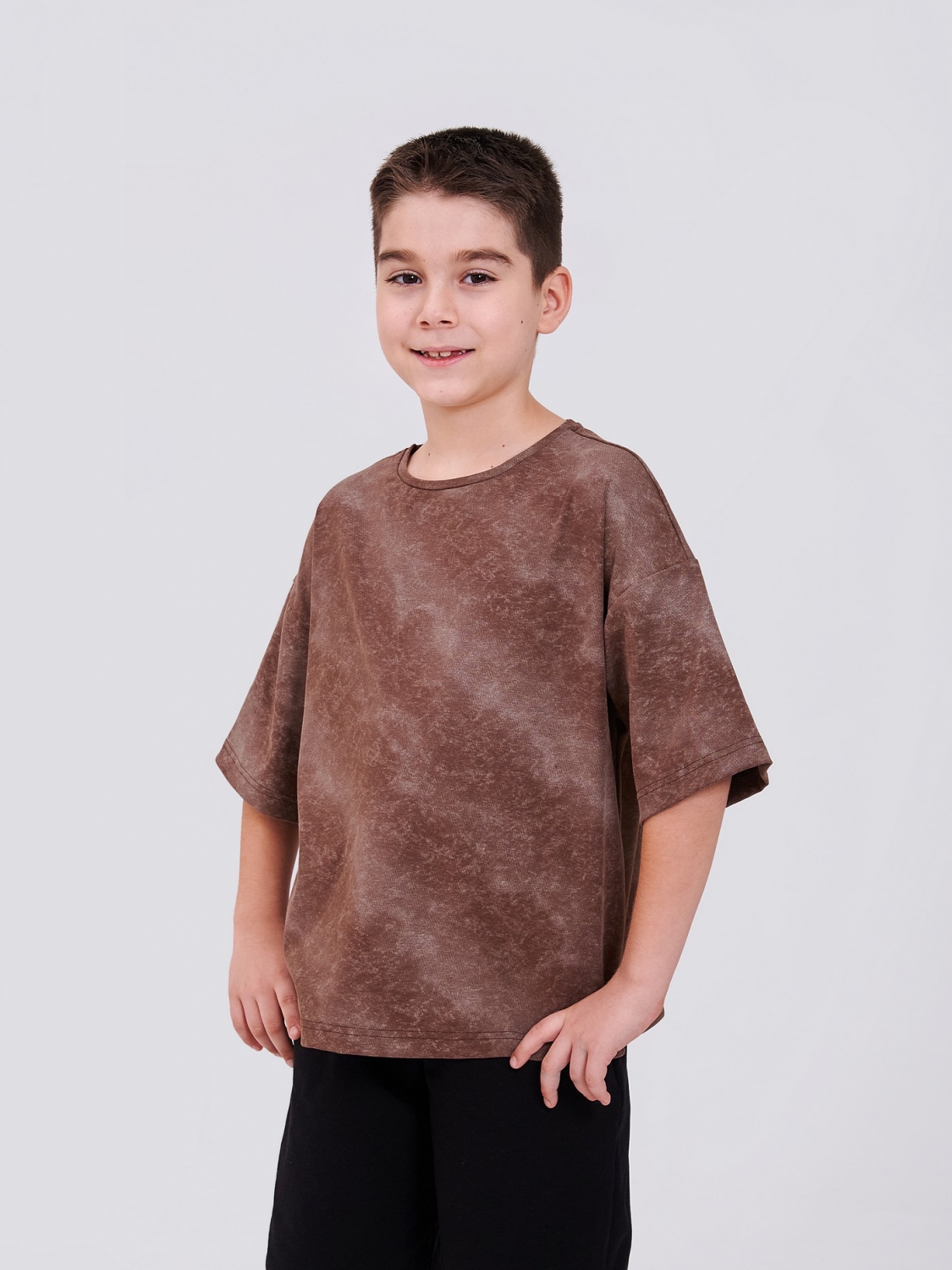 Детская футболка для мальчика | с 122 по 140 | Стрейч ластик высшего качества | 90% хлопок | Комфортно и стильно для мальчика SMIL 110847 Коричневый