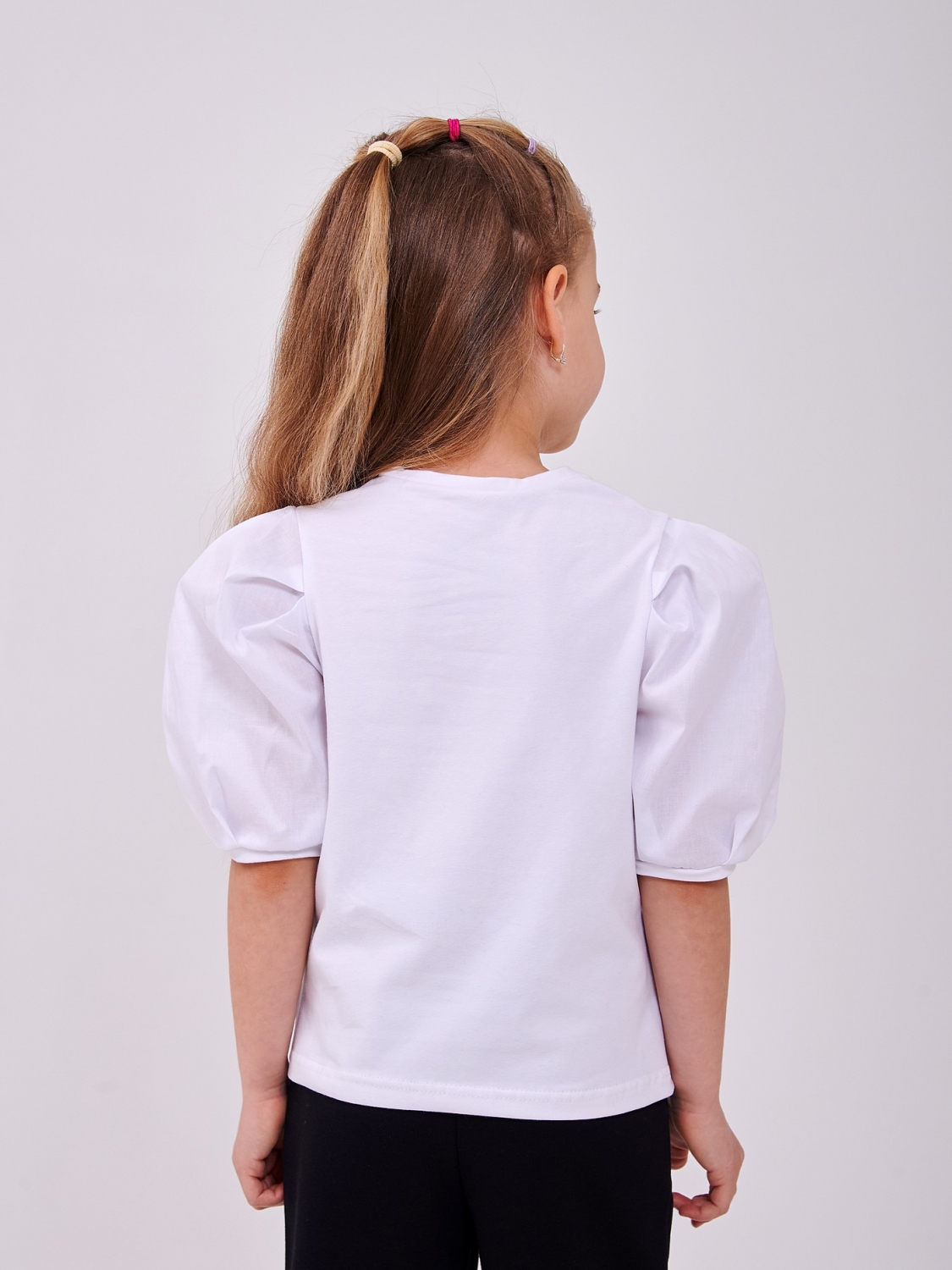 Белоснежная блузка для девочки с модными пышными рукавами — идеальный выбор как для школы, так и для праздничного выхода. Мягкое, дышащее полотно стрейчевый кулир и ситец на рукавах. Удобный крой — свобода в каждом движении. Идеально сочетается с юбками, брюками и джинсами.