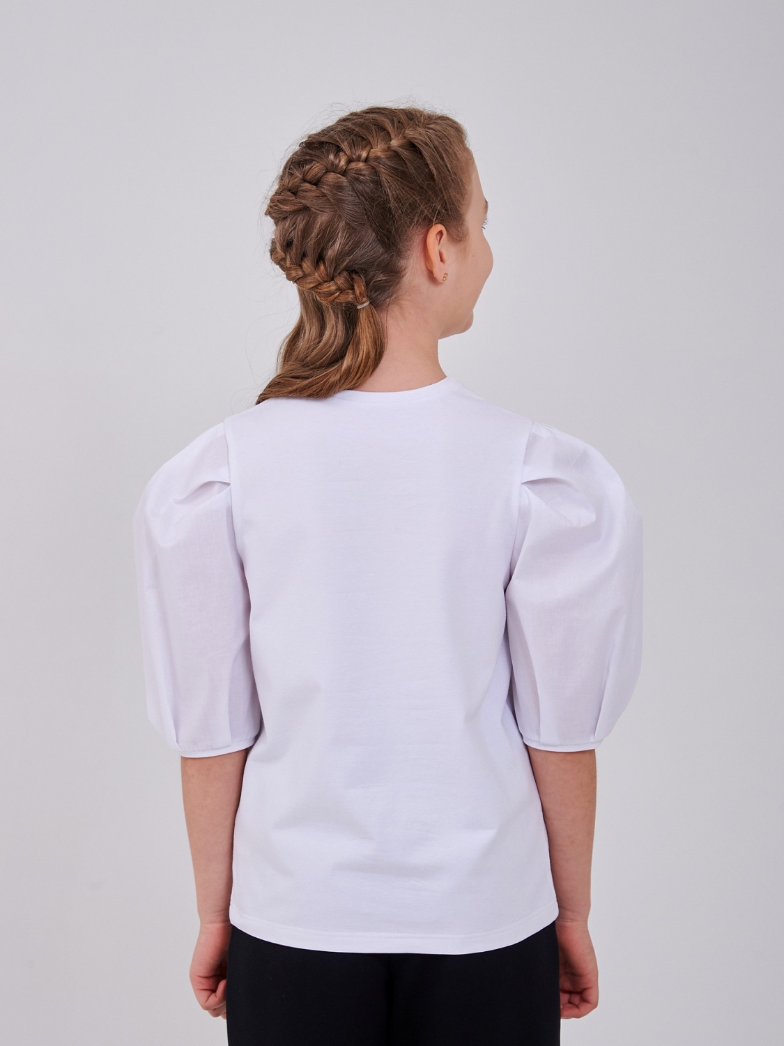 Позвольте вашей девочке чувствовать себя особенной! Белоснежная блузка для девочки с модными пышными рукавами — идеальный выбор как для школы, так и для праздничного выхода. Мягкое, дышащее полотно стрейчевый кулир и ситец на рукавах. Удобный крой — свобода в каждом движении. Идеально сочетается с юбками, брюками и джинсами.