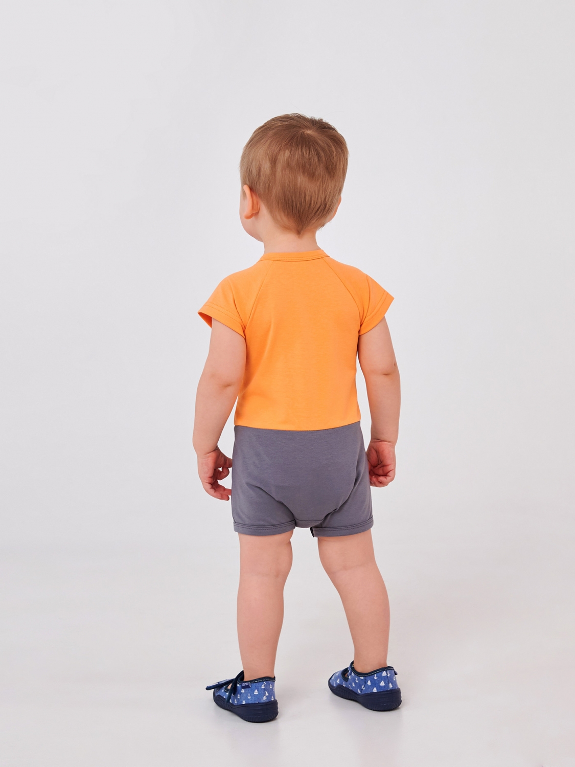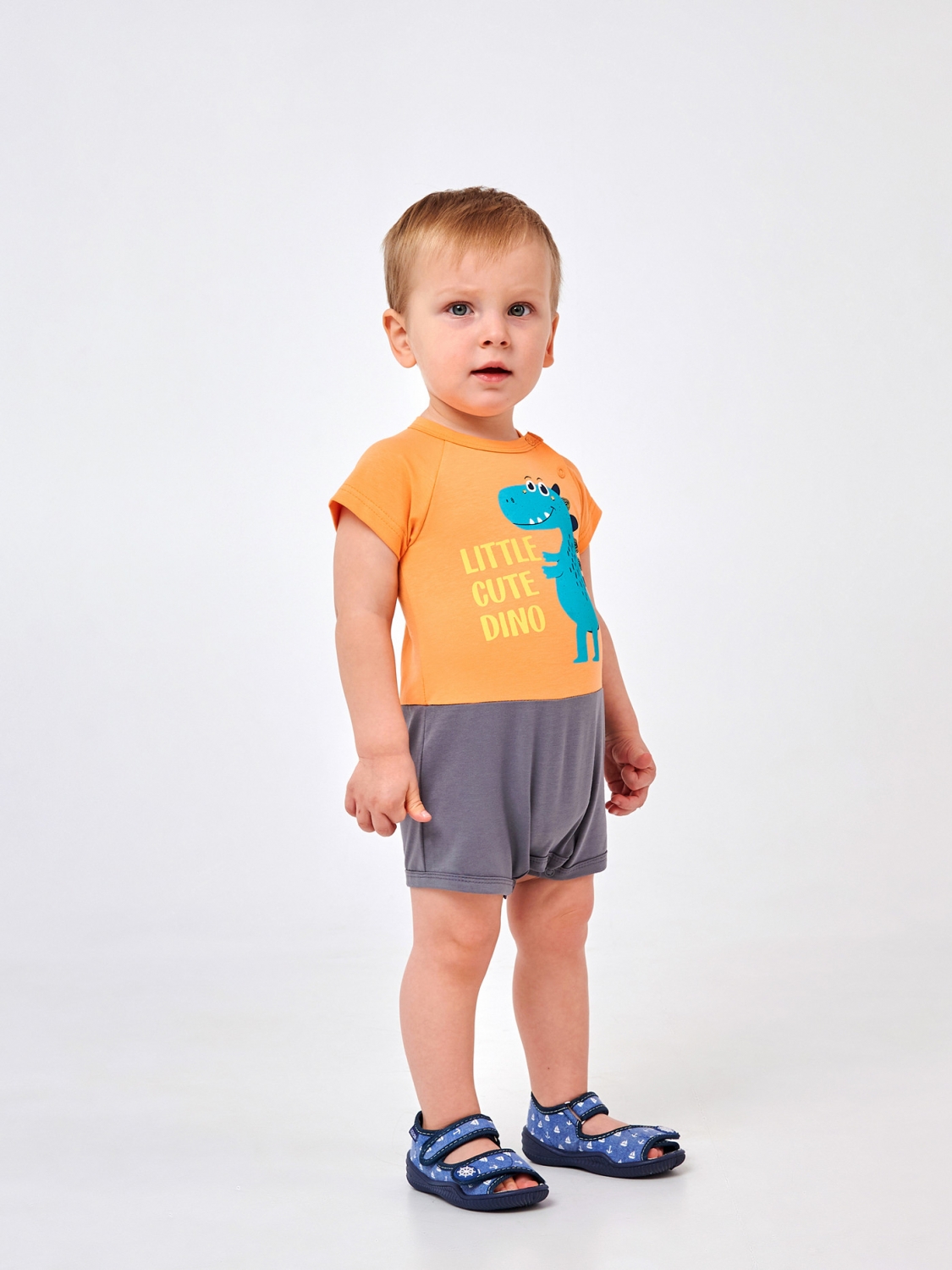 Песочник с милой прямой печатью веселого динозаврика, который готов отправиться в путешествие вместе с вашим малышом. Комбинирование цветов - оранжевый верх и серый низ - придает этому песочнику особую индивидуальность и стиль. А кнопочки обеспечат легкость одевания и снятия, делая уход за вашим малышом максимально комфортным. Пошитый из стрейчевого кулира, наш песочник обеспечит максимальную свободу движения вашему мальчику в течение всего дня.