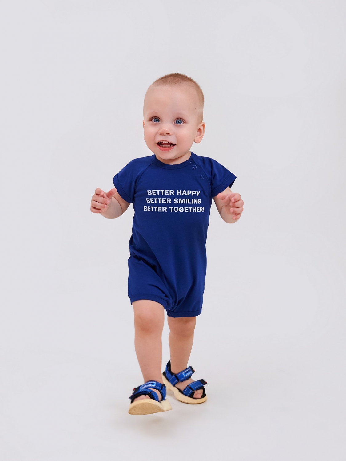 Удобный и стильный песочник lдля мальчика— идеальный вариант для активных малышей! Прямая печать с надписью "Better Happy, Better Smiling, Better Together" — позитив в каждой детали! Стрейчевое кулирное полотно — мягкость, комфорт и свобода движений. Удобные кнопки — лёгкость в переодевании, удобство для малыша и родителей.