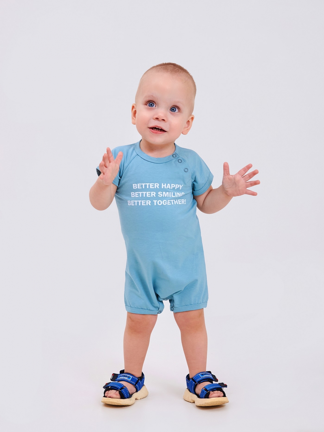 Удобный и стильный песочник lдля мальчика— идеальный вариант для активных малышей! Прямая печать с надписью "Better Happy, Better Smiling, Better Together" — позитив в каждой детали! Стрейчевое кулирное полотно — мягкость, комфорт и свобода движений. Удобные кнопки — лёгкость в переодевании, удобство для малыша и родителей.