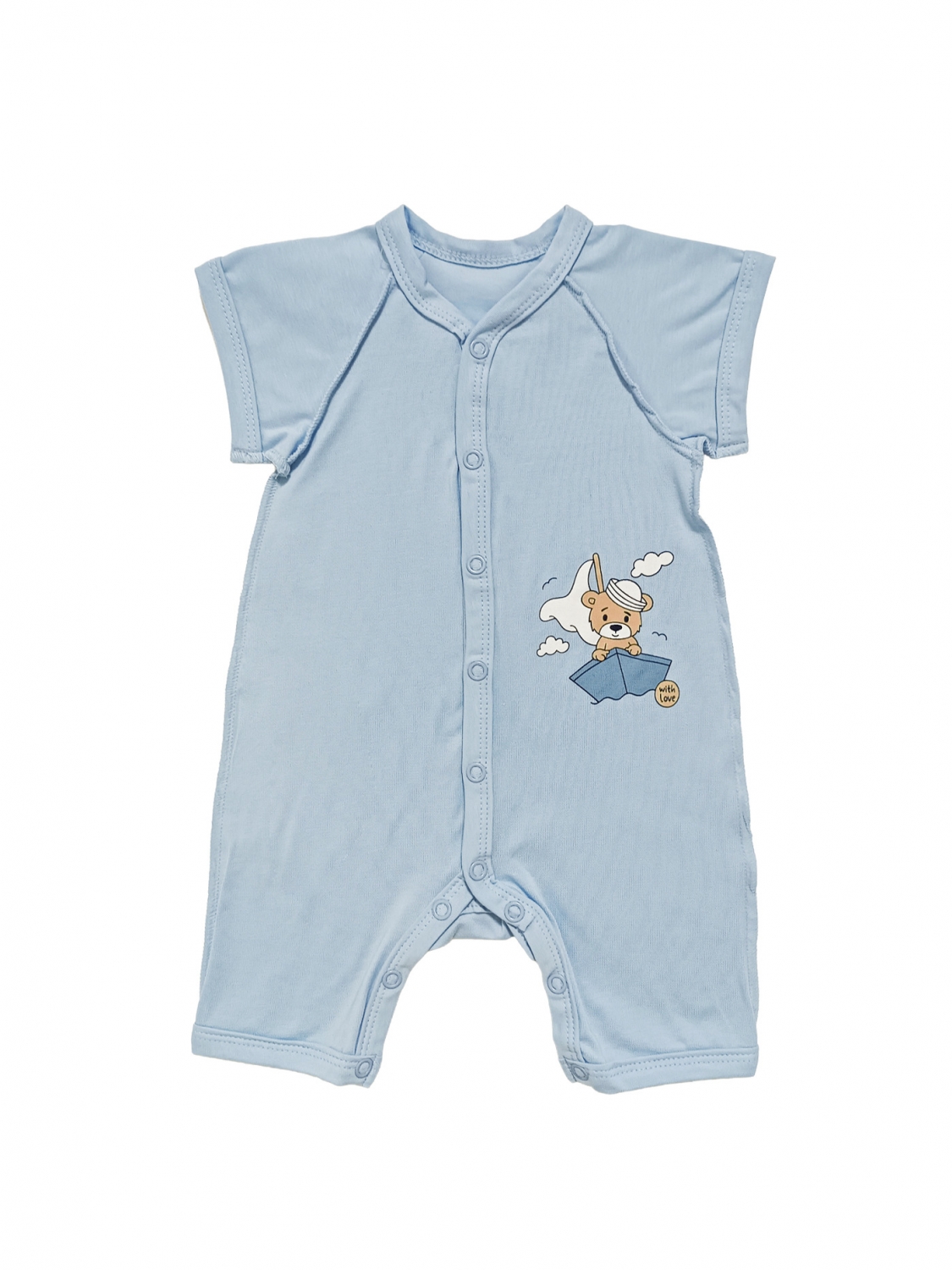 Песочник для мальчика из мягкого стрейч-кулира — удобная и практичная модель для малышей на каждый день. Лёгкое эластичное полотно приятно прилегает к телу, хорошо тянется и обеспечивает комфорт даже в тёплую погоду. Модель оснащена удобной застёжкой на кнопках по всей длине и по низу, что позволяет быстро и легко переодевать малыша. Аккуратный крой и короткий рукав делают песочник идеальным вариантом для сна, прогулок и активного времени. Прямая печать с милым рисунком добавляет изделию нежности и сохраняет яркость после множества стирок. Комфортный и практичный песочник для повседневной носки.