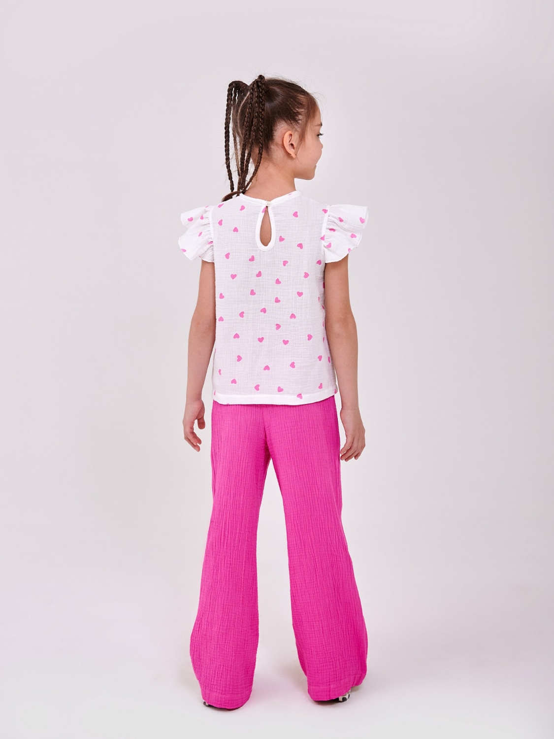 Лёгкий комплект для девочки из мягкого муслина: футболка + брюки — идеальный выбор на каждый день! Натуральный муслин — дышащее полотно, которое нежно прилегает к коже и не сковывает движений.