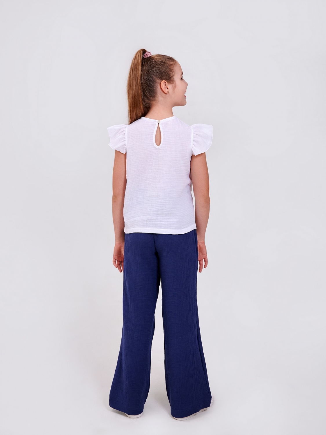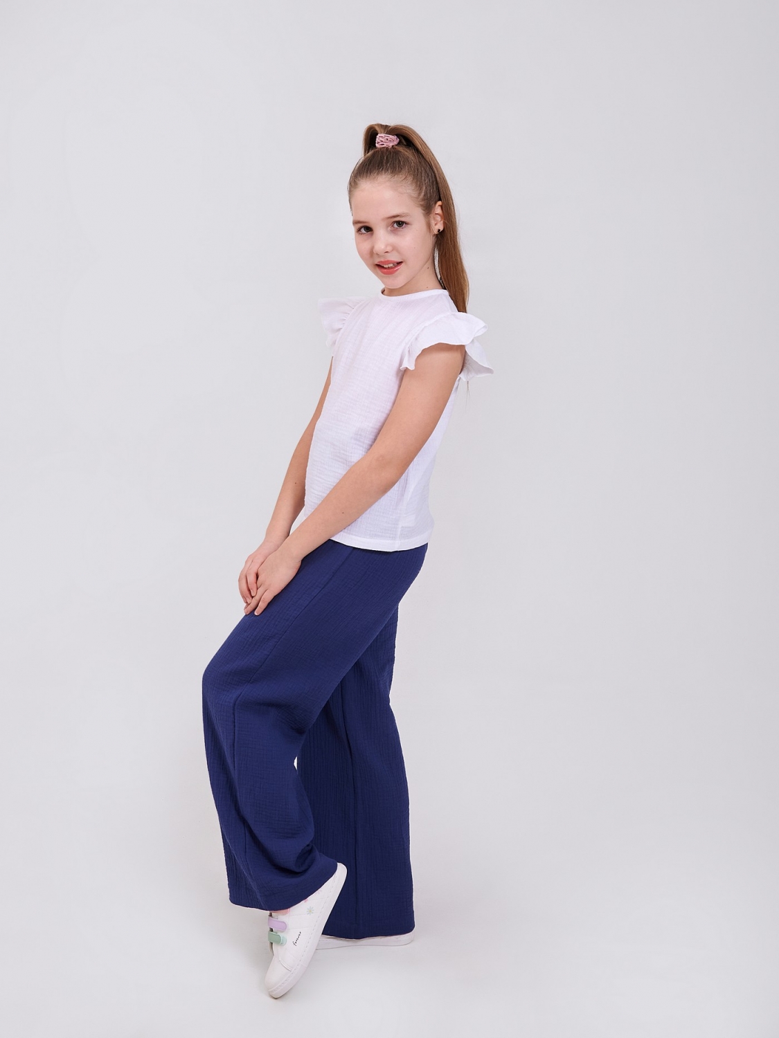 Лёгкий комплект для девочки из мягкого муслина: футболка + брюки — идеальный выбор на каждый день! Натуральный муслин — дышащее полотно, которое нежно прилегает к коже и не сковывает движений.