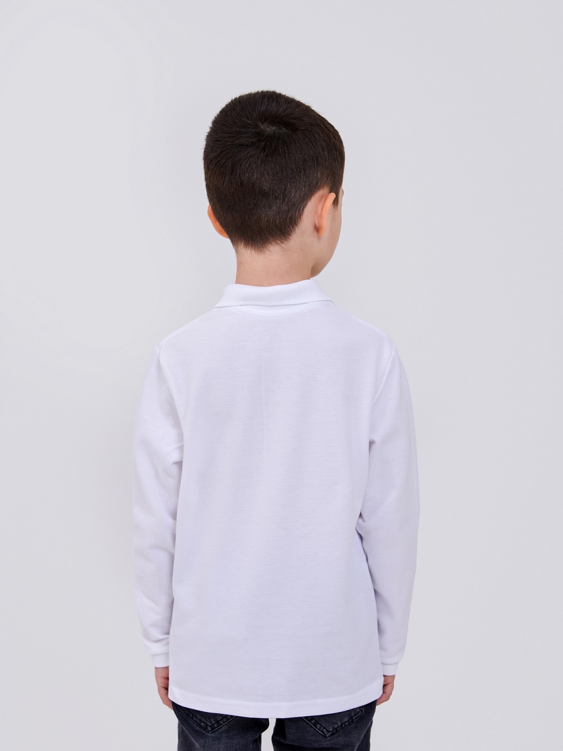 Классическая белая футболка-поло с длинным рукавом — универсальный выбор для школы и повседневных образов. Лаконичный дизайн. Удобная застёжка на кнопках. Дышащее хлопковое полотно лакоста. Идеально сочетается с брюками и джинсами, подходит под бомберы и пуловеры.