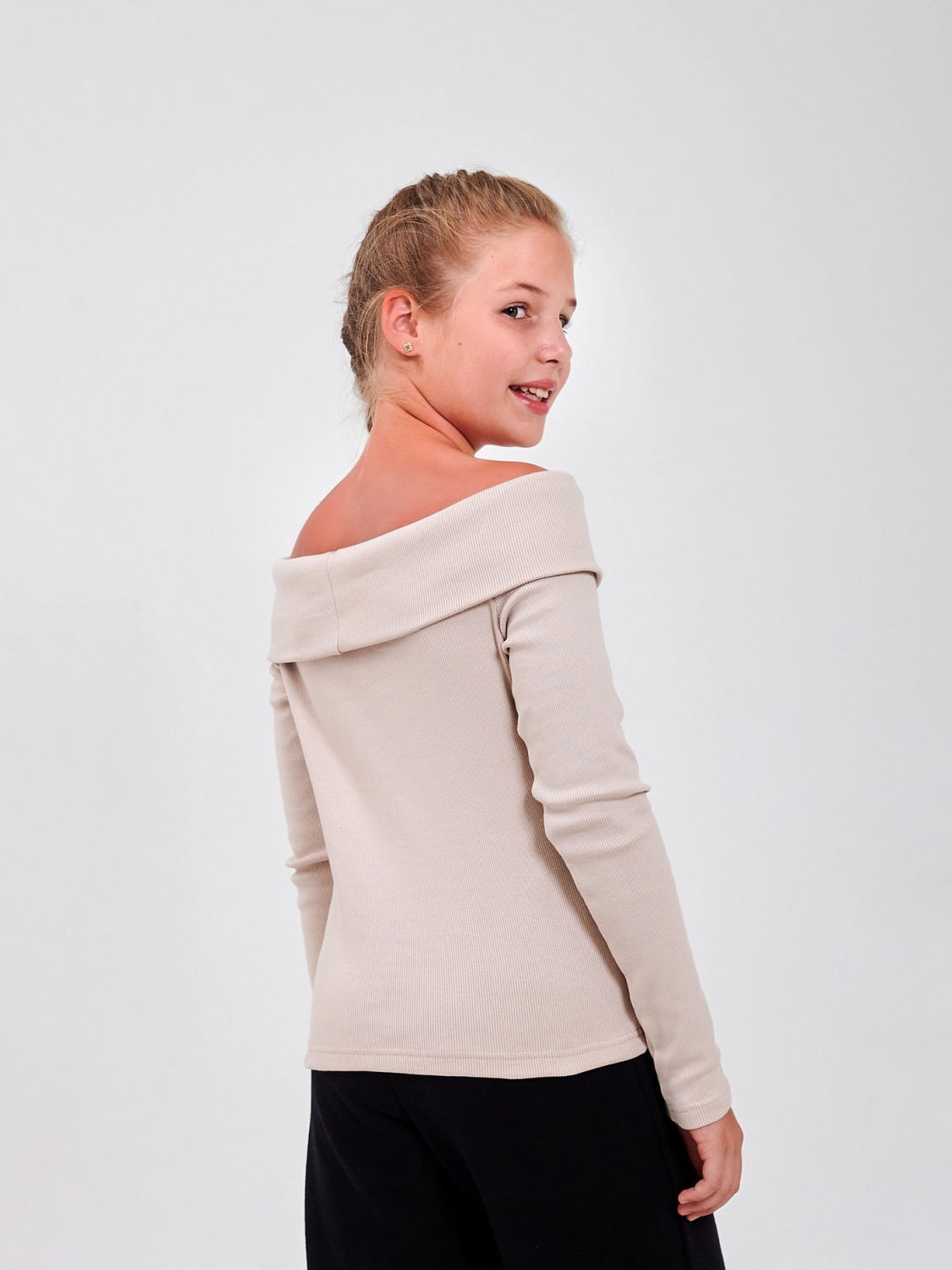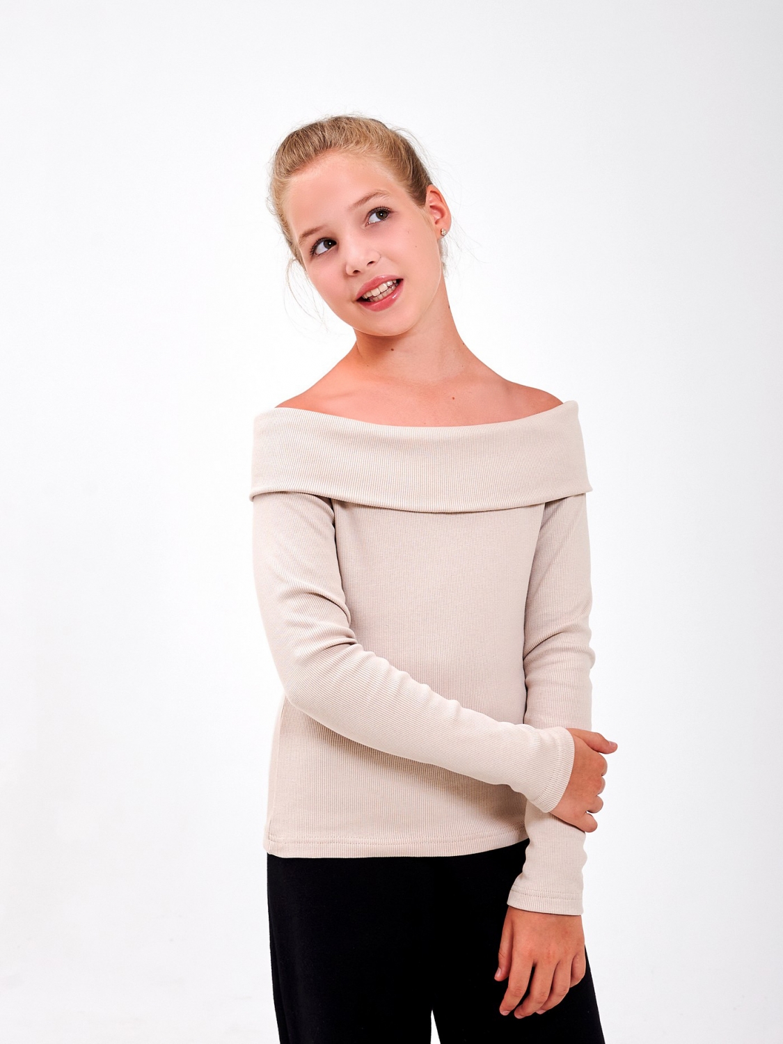 Стильный лонгслив для девочки с открытыми плечами из кашкорса. Элегантный и удобный — идеальный выбор для юных модниц! Мягкое полотно кашкорс тянется и комфортно садится по фигуре, подчёркивая красоту силуэта. Оригинальный крой с открытыми плечами и широким отворотом делает образ женственным и нарядным. Отлично подходит как для повседневных образов, так и для особых случаев. Легко комбинируется с юбками, брюками и джинсами.