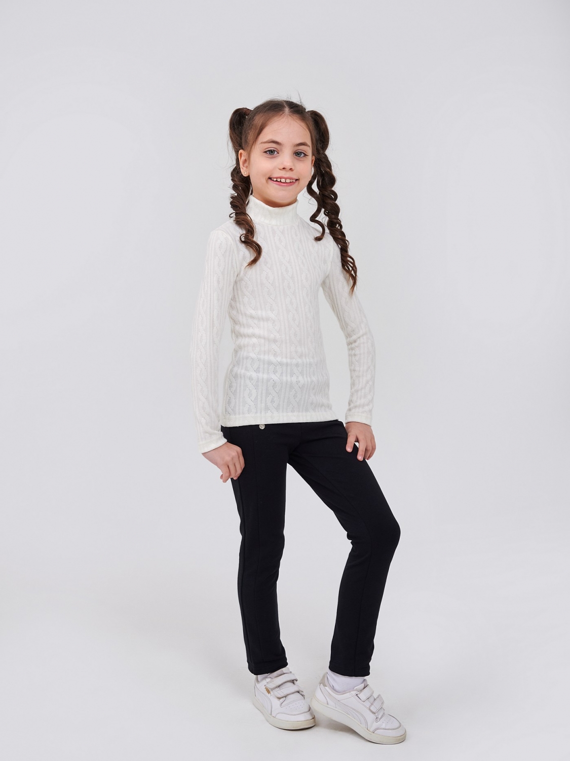 Детский школьный лонгслив для девочки | Размер: от 116 см до 140 см | Вязанный трикотаж | 70% вискоза | Идеально на осень и зиму для девочки SMIL 114040 Молочный