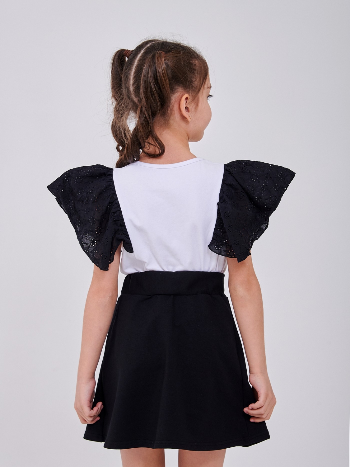 Добавьте немного волшебства в гардероб вашей девочки — с нашими стильными блузками с кружевными рукавами. Эффектный контраст белого с черным, нежное кружево и настоящий вау-эффект. Полотно стрейчевый кулир сюид — для максимального комфорта. Идеально для праздников, школы и стильных будней.
