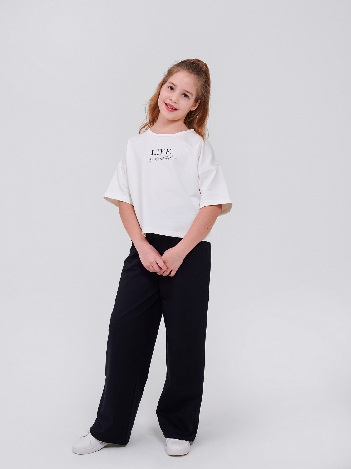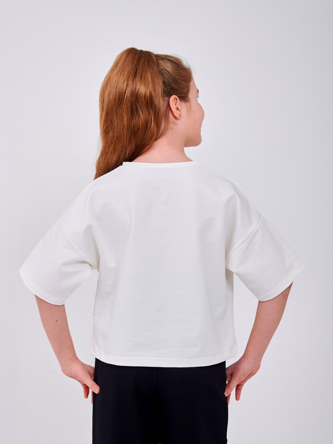 Детская футболка | Размер: от 146 до 164 см | Стрейч футер высшего качества | 70 % хлопок | Комфортно и стильно для девочки SMIL 114045 Молочный