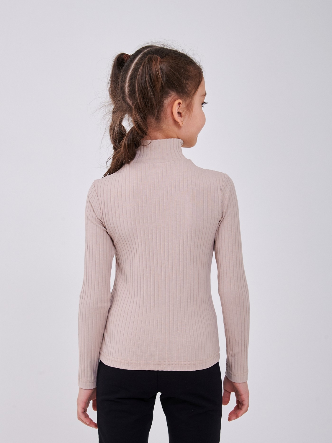 Ультрамодный гольф для девочки из мягкого рубчика в бежевом цвете — удобная базовая вещь с оригинальной деталью. Асимметричный вырез и высокая горловина придают образу особый характер. Тянется, дышит, красиво садится по фигуре — идеально для школы, прогулок и модных фотосессий.