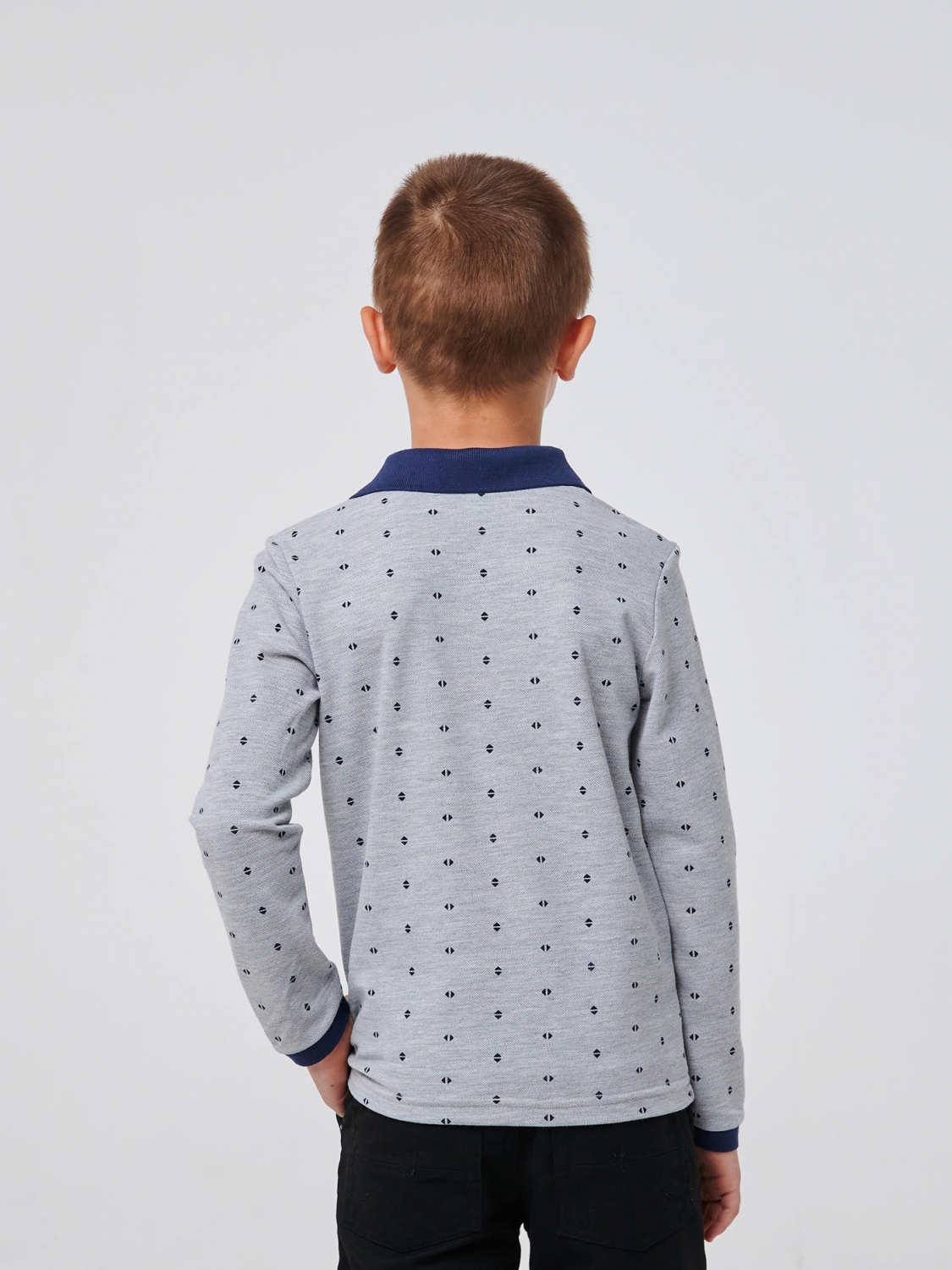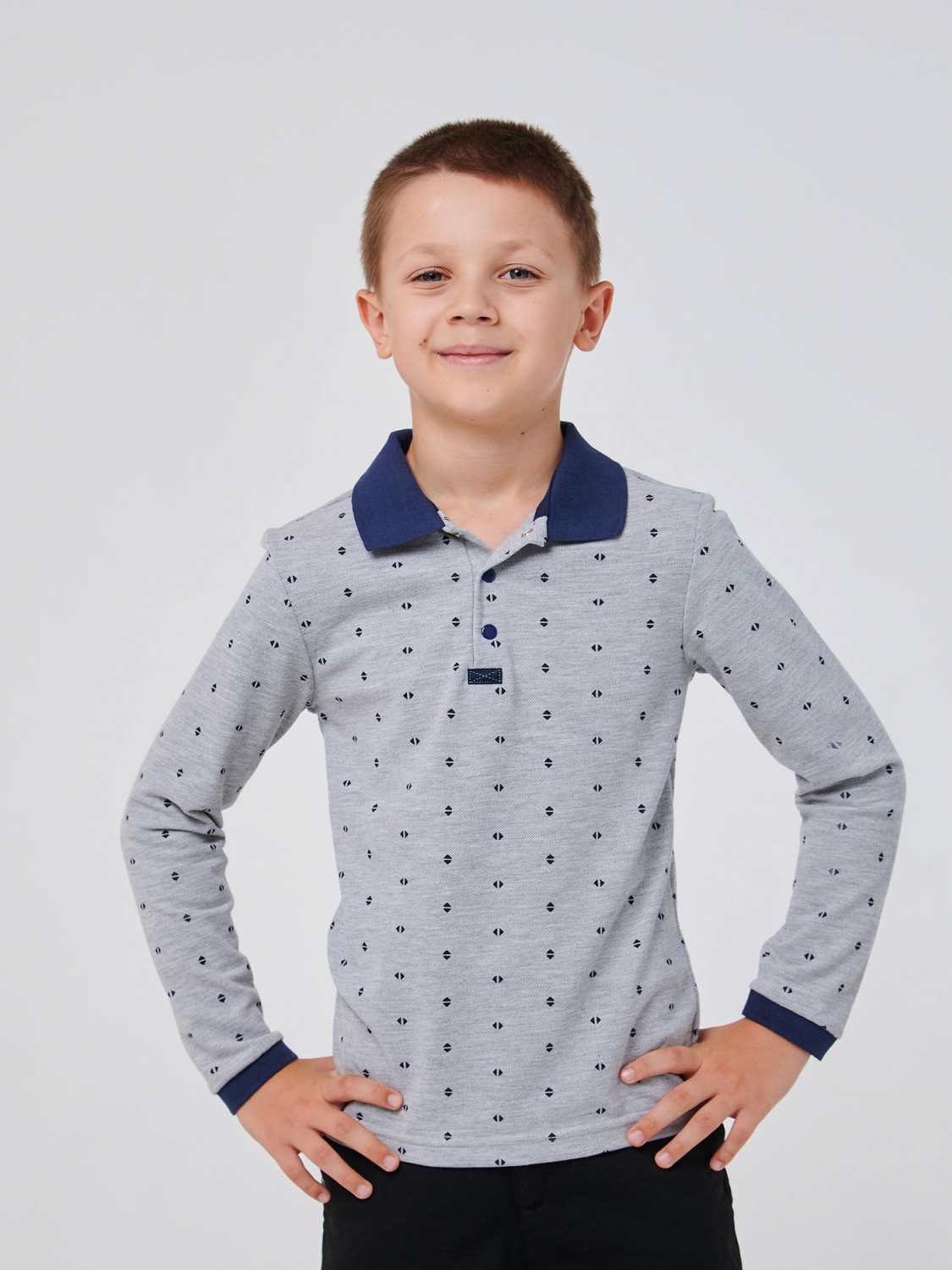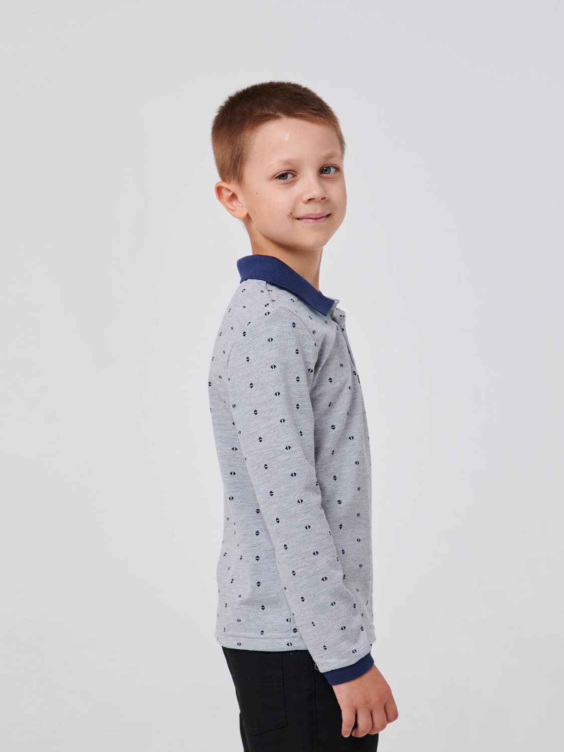 Футболка-поло (длинный рукав) для мальчика SMIL 114884 Рисунок на сером