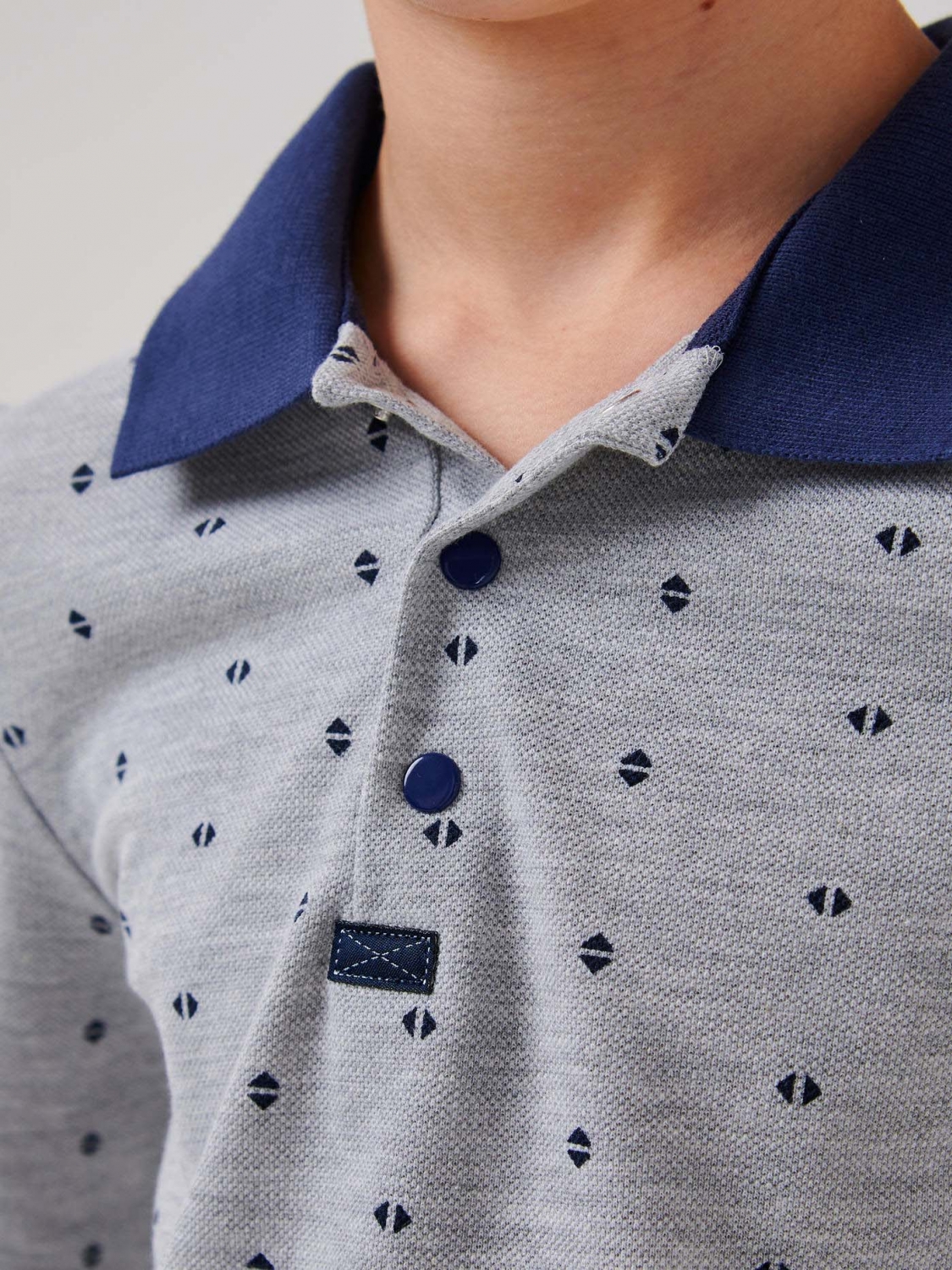 Футболка-поло из полотна лакоста со стильным рисунком на сером фоне и длинным рукавом, идеально подходит для повседневных выходов и встреч с друзьями. Позвольте вашему мальчику выразить свою индивидуальность и насладиться комфортом и стилем одновременно.