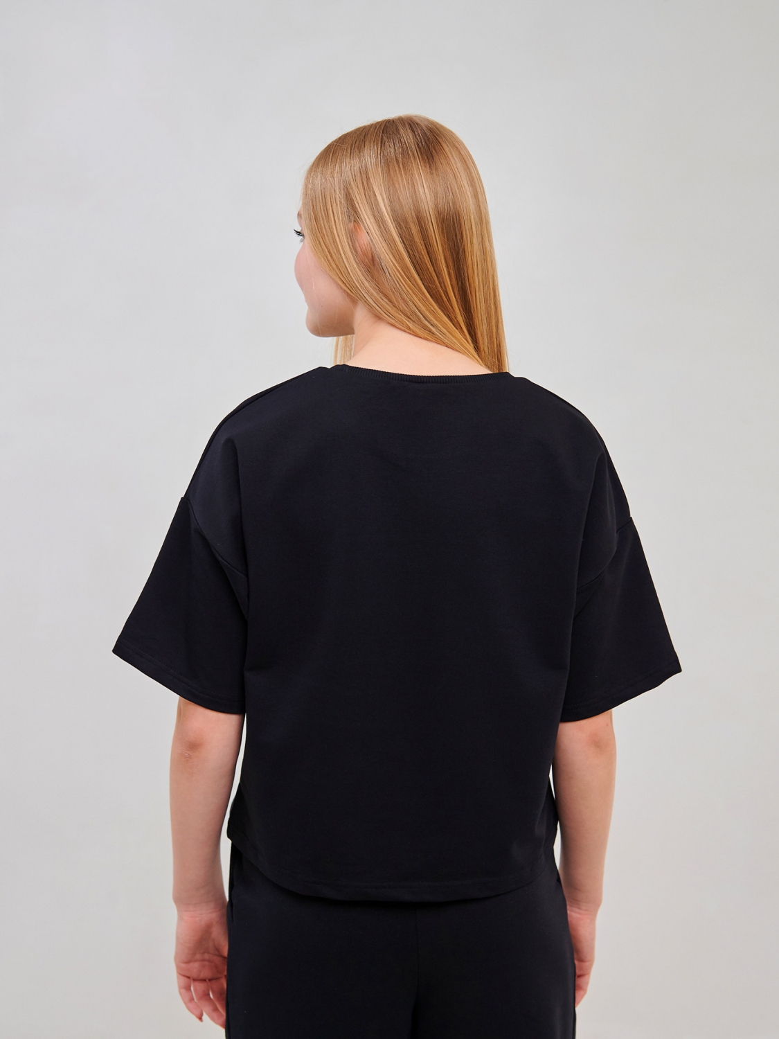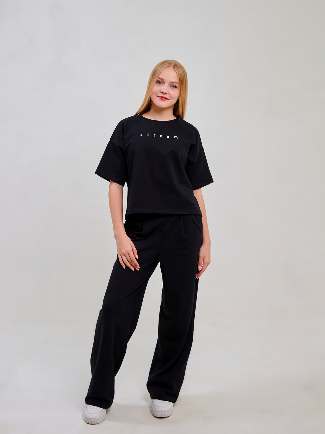 Эта модная футболка пошита из мягкого и эластичного стрейчевого футера, обеспечивающего комфорт и свободу движения на протяжении всего дня. Особое внимание привлекает оригинальная наклейка с надписью 'Stream', которая придаёт футболке современный и динамичный вид. Футболка идеально подходит для активных девочек, которые ценят стиль и удобство.