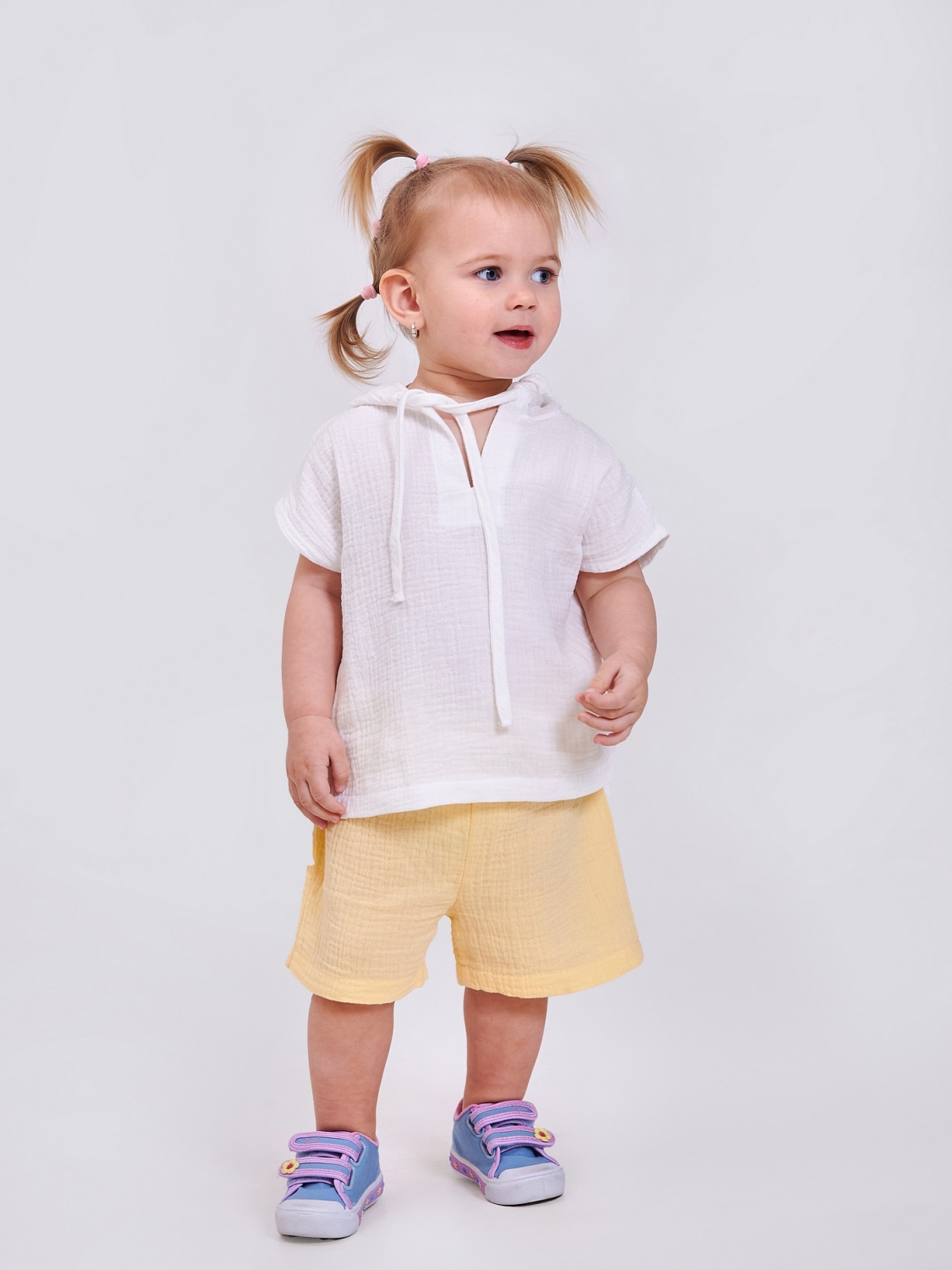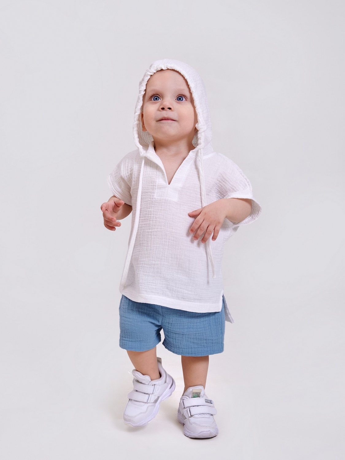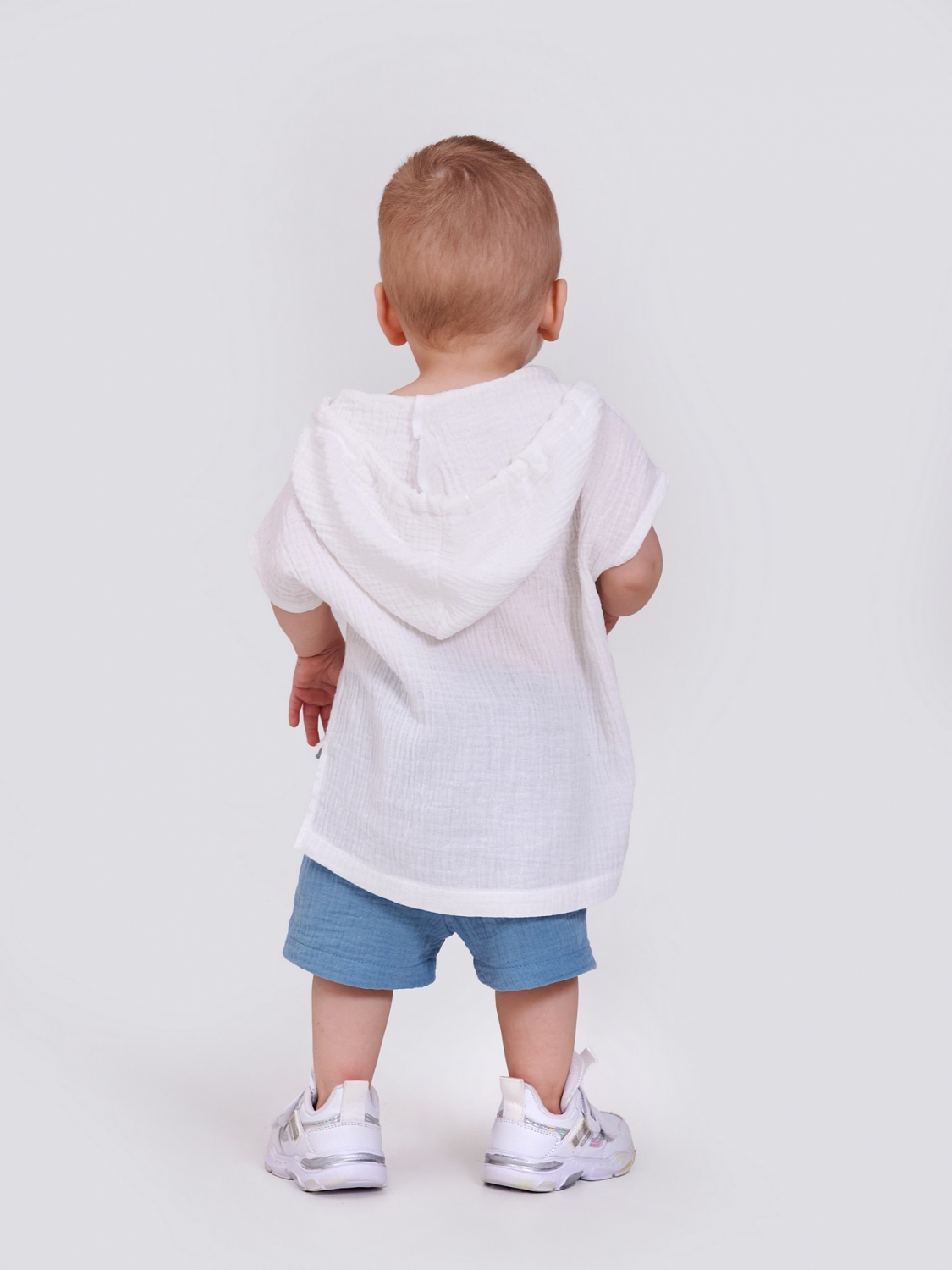 Стильная и лёгкая туника из муслина — отличный выбор для прогулок, отдыха и защиты от солнца в летние дни. Модель свободного кроя с капюшоном сочетает в себе комфорт, воздухопроницаемость и функциональность. Идеальна как на пляж, так и для повседневной носки.