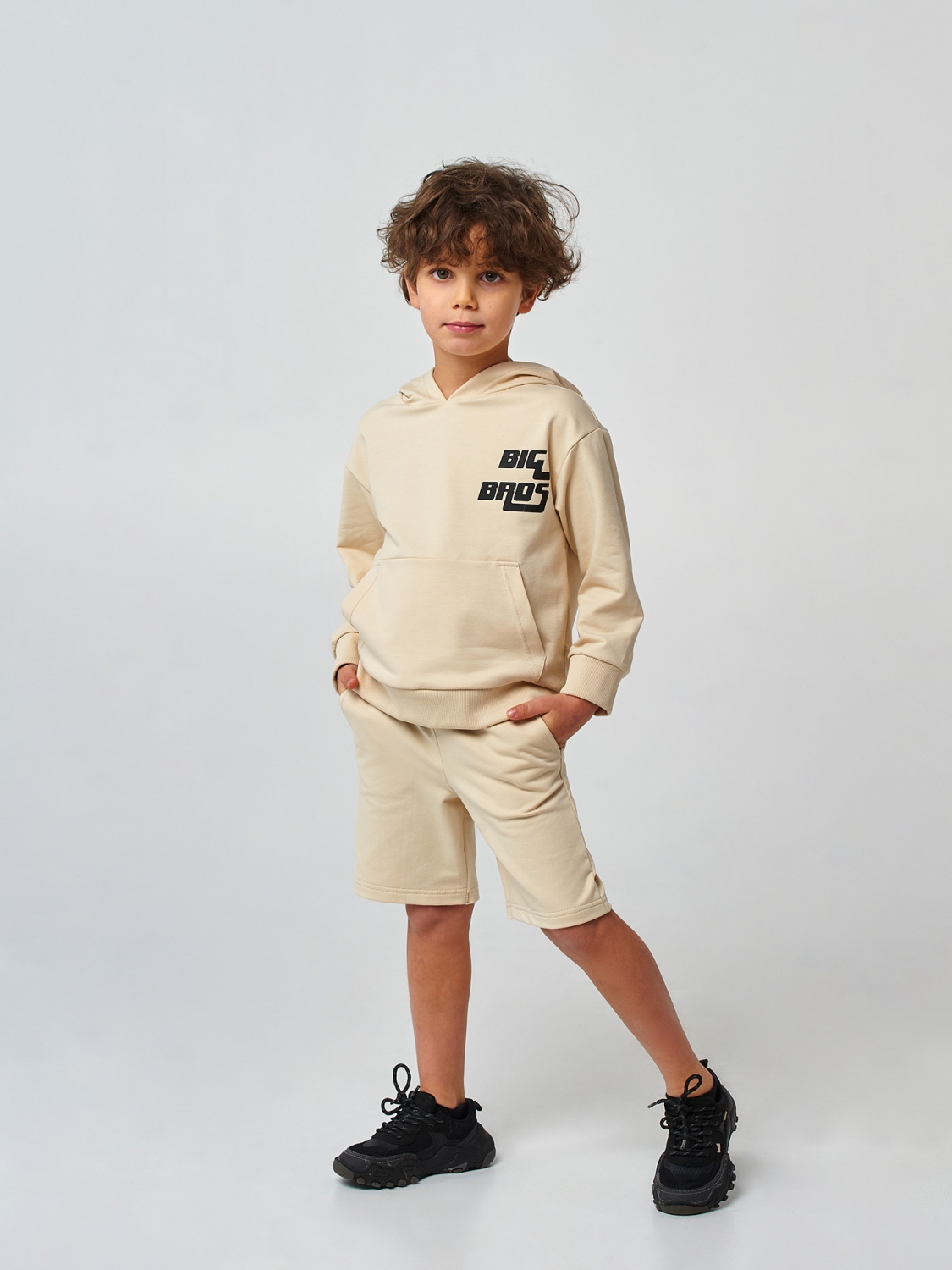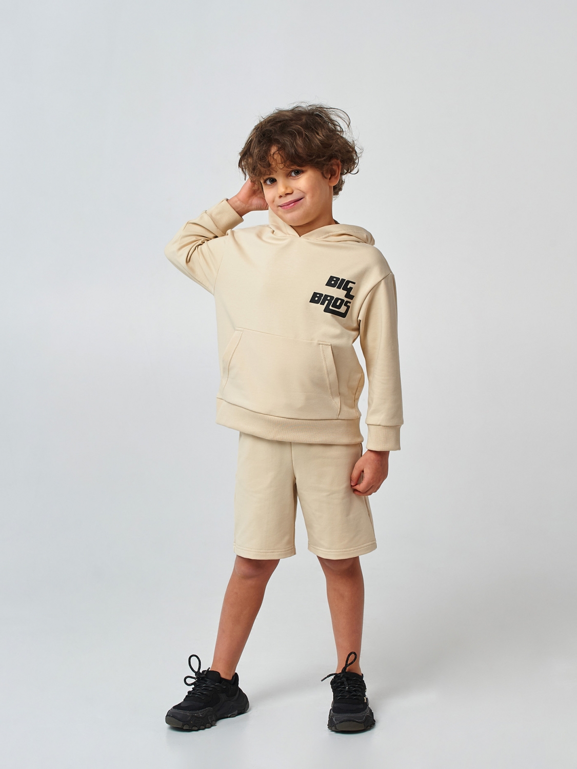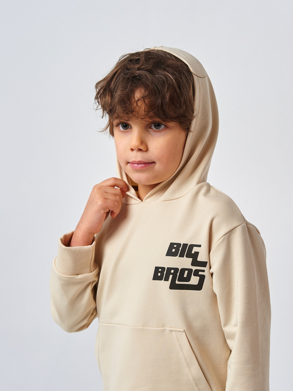 В сочетании с шортами получается шикарный костюм. Детское худи символизирует силу, энергию и свежесть. С карманом и уютным капюшоном, это худи создано для долгих прогулок и приключений вашего мальчишки. Украшена качественной и надежной наклейкой "Big Bros". Дайте вашему мальчику возможность выделиться и быть стильным.