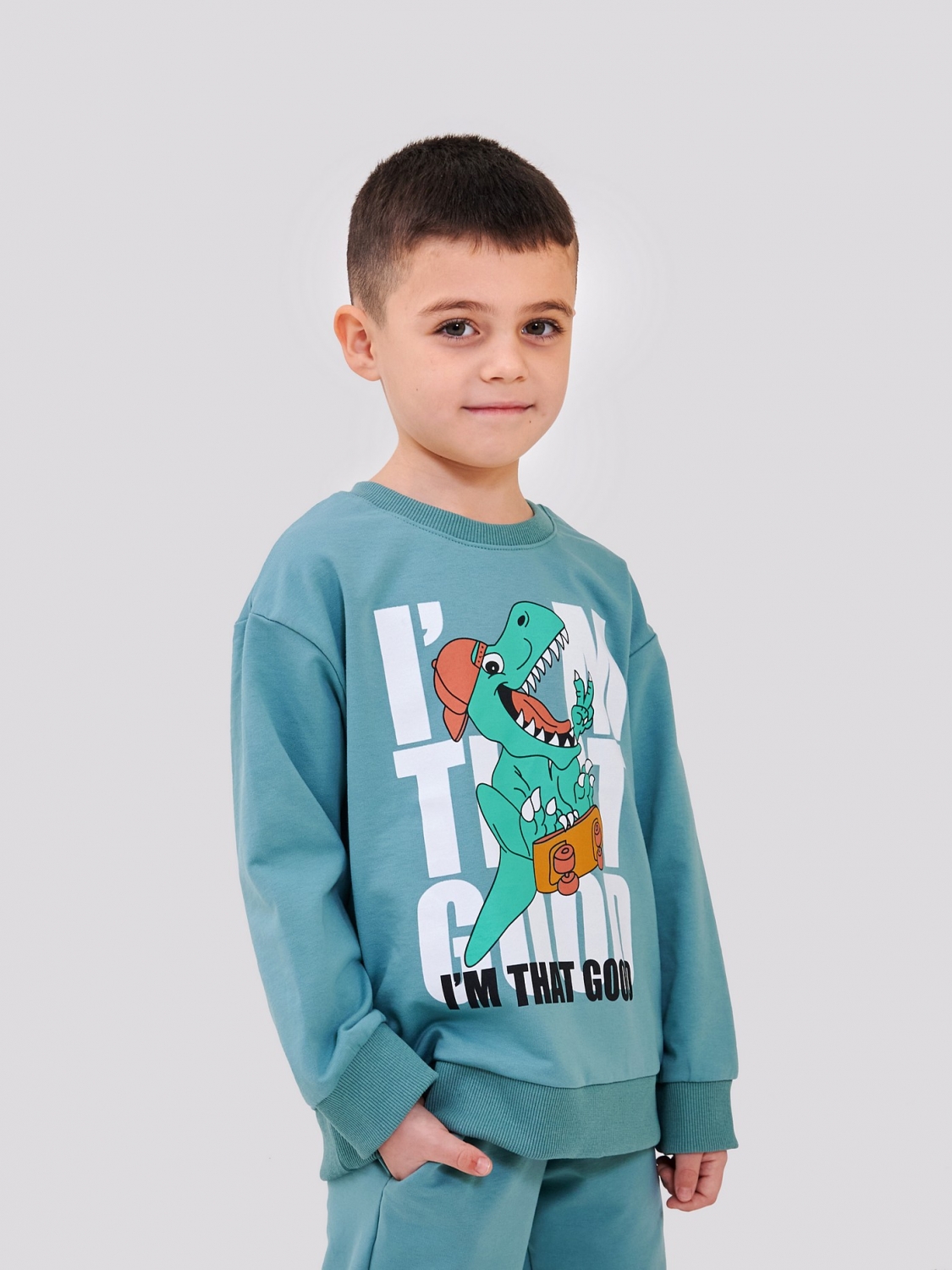Крутая и стильная толстовка для маленьких любителей динозавров. Стрейчевый футер – мягкое, теплое и приятное к телу полотно. Свободный крой толстовки для комфорта активных мальчишек. Отлично смотрится с джинсами, брюками и спортивными штанами.