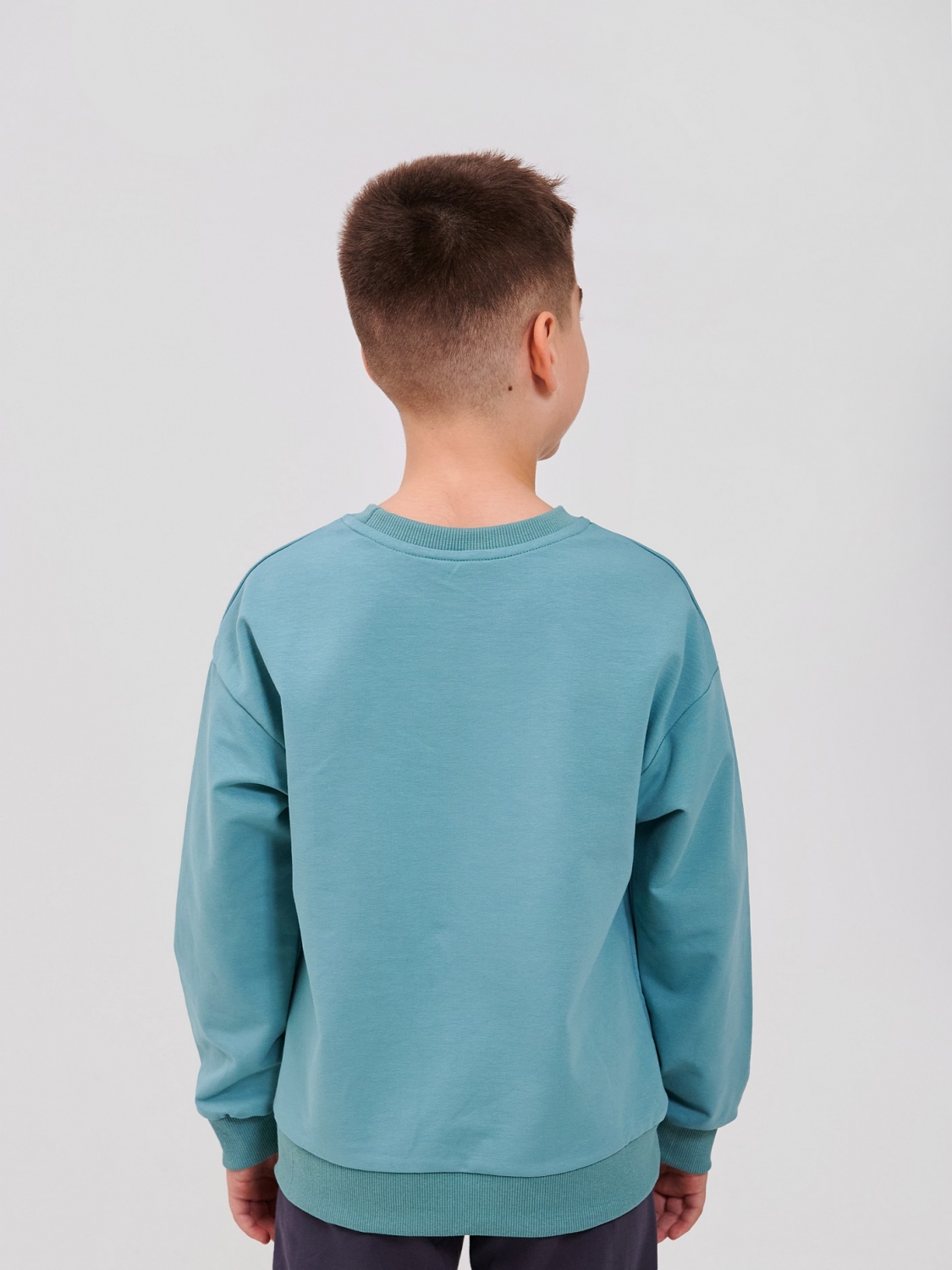 Детский свитшот для мальчика | с 122 по 140 см | 95% Хлопок | Стрейч-футер высокого качества | Демисезон для мальчика SMIL 116668 Серо-зеленый