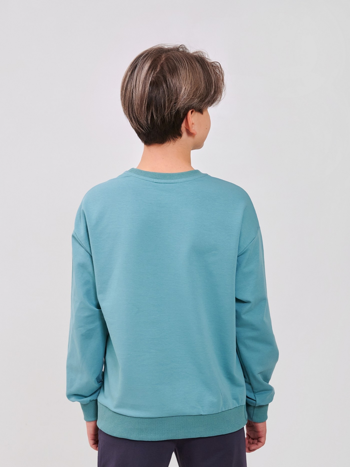 Детский свитшот для мальчика | с 146 по 164 | 95% Хлопок | Стрейч-футер высокого качества | Демисезон для мальчика SMIL 116669 Серо-зеленый